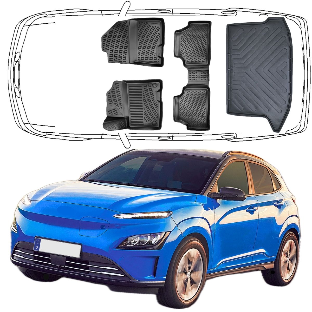 Maximaler Schutz trifft auf perfekte Passform: Die passgenauen Trimak Gummimatten wurden mithilfe modernster 3D-Laserscantechnologie speziell für den 3D Auto Fußmatten & Kofferraumwanne Set Kompatibel mit Hyundai Kona Elektro 1.Gen 2017-2023 entwickelt.