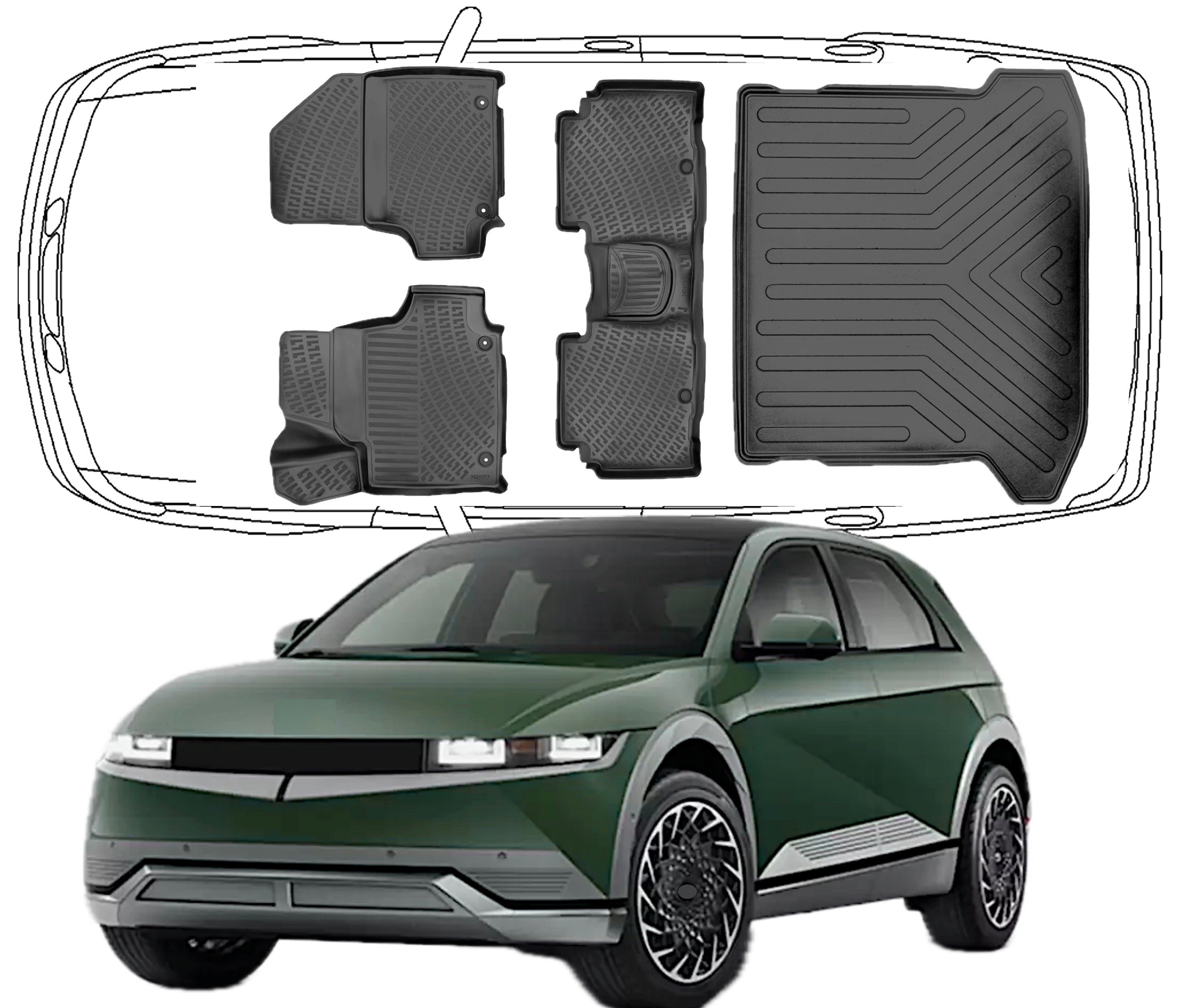 3D Fußmatten & Kofferraumwanne Auto Set Kompatibel mit Hyundai IONIQ 5 Fixed Mittelkonsole