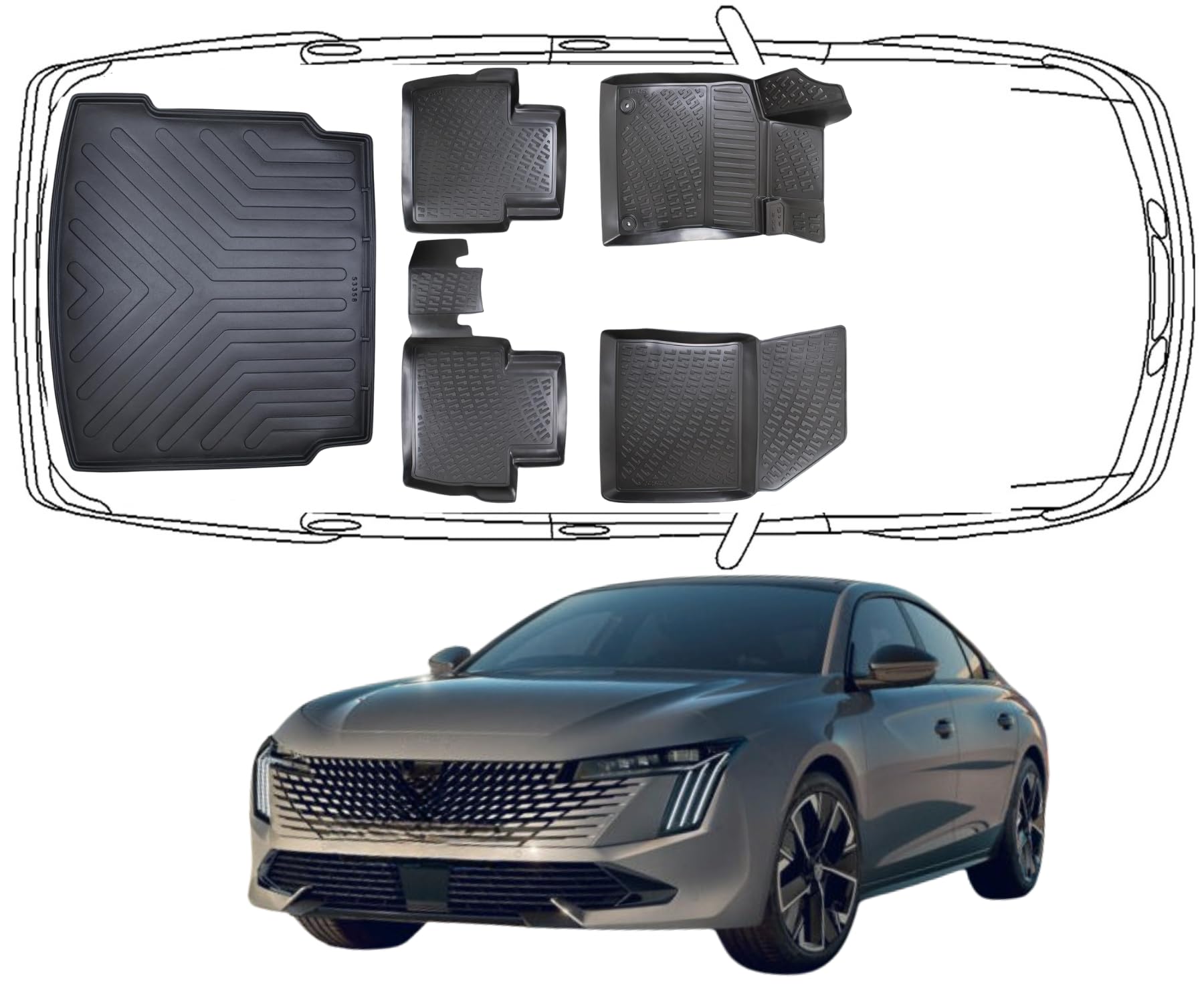 3D Fußmatten & Kofferraumwanne Auto Set Kompatibel mit Peugeot 508 II Sedan Limousine 2018-2025