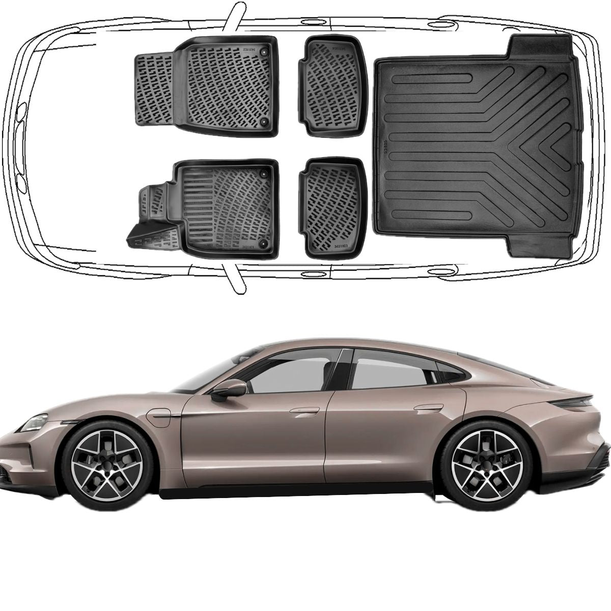 3D Fußmatten & Kofferraumwanne Auto Set Kompatibel mit Porsche Taycan 2019 - 2024