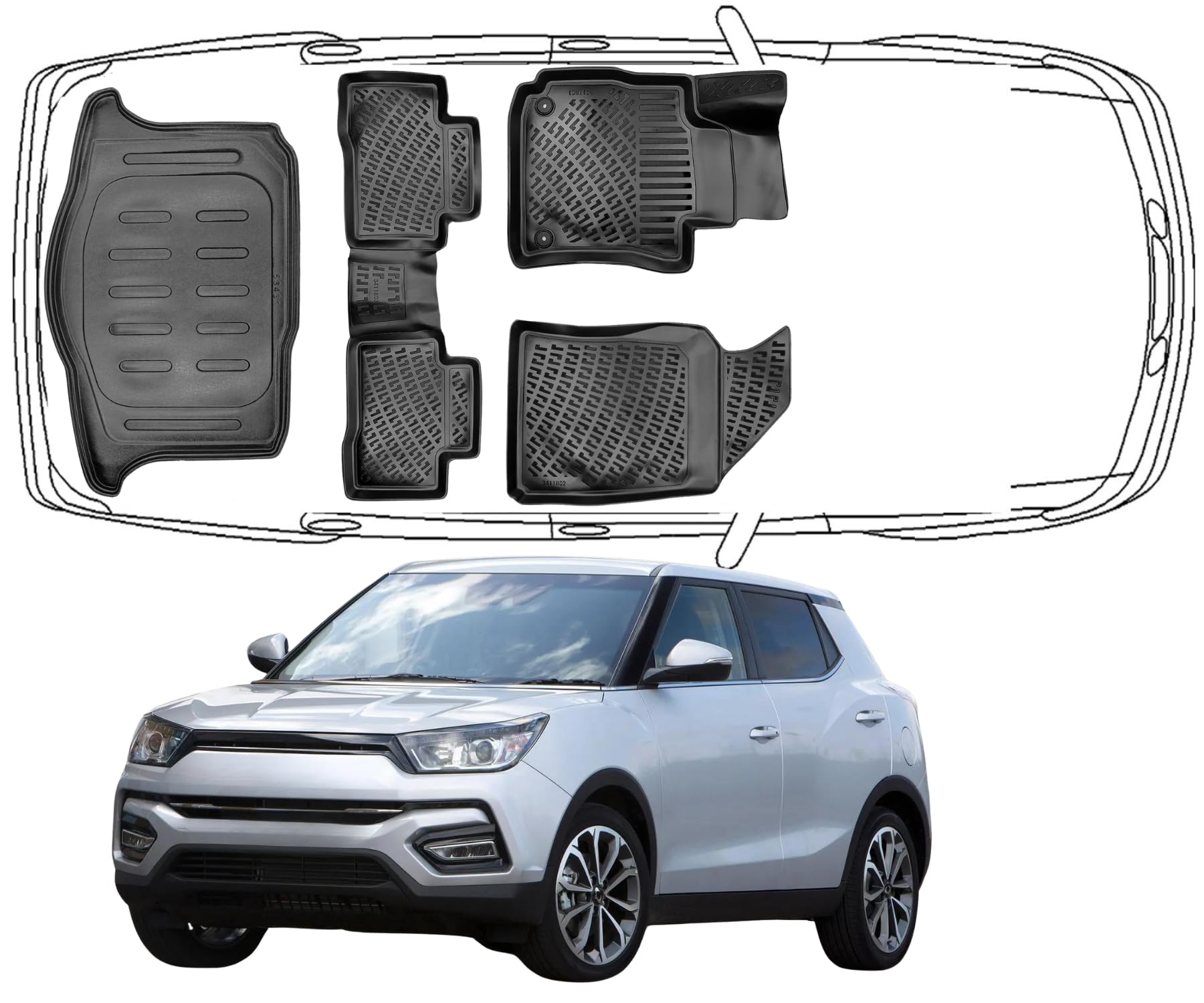 3D Fußmatten & Kofferraumwanne Auto Set Kompatibel mit SsangYong Tivoli ab 2015 - 2014
