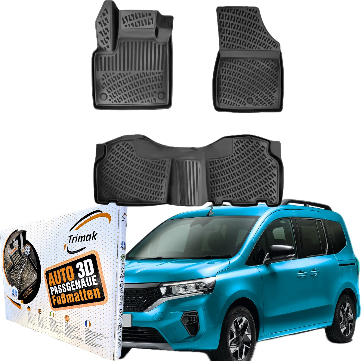 Maximaler Schutz trifft auf perfekte Passform: Die passgenauen Trimak Gummimatten wurden mithilfe modernster 3D-Laserscantechnologie speziell für den Trimak Nissan Townstar ab 2022 Auto AllWetter Gummimatten entwickelt.