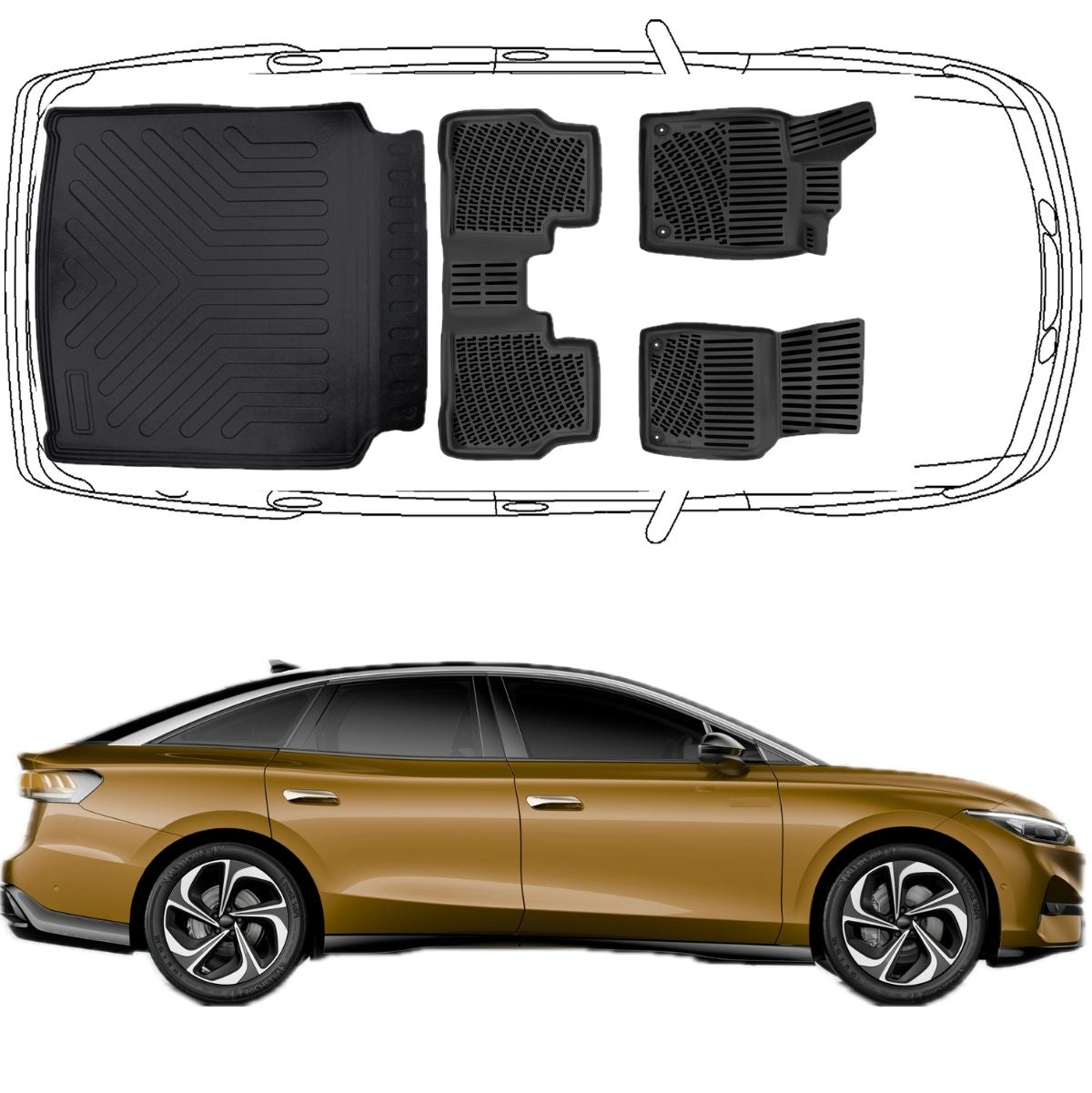 Maximaler Schutz trifft auf perfekte Passform: Die passgenauen Trimak Gummimatten wurden mithilfe modernster 3D-Laserscantechnologie speziell für den 3D Auto Fußmatten & Untere Kofferraumwanne Set Kompatibel mit Volkswagen ID.7 Sedan entwickelt.