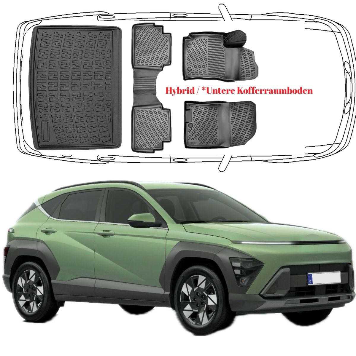 Maximaler Schutz trifft auf perfekte Passform: Die passgenauen Trimak Gummimatten wurden mithilfe modernster 3D-Laserscantechnologie speziell für den 3D Auto Fußmatten & Untere Kofferraumwanne Set Kompatibel mit Hyundai Kona 2.Gen Hybrid ab 2023 entwickelt.