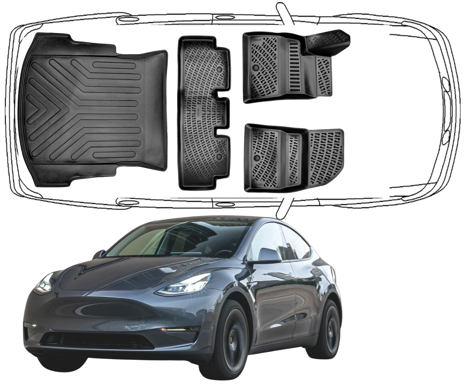 3D Fußmatten & Kofferraumwanne Auto Set Kompatibel mit Tesla Model 3 2017 - 2024