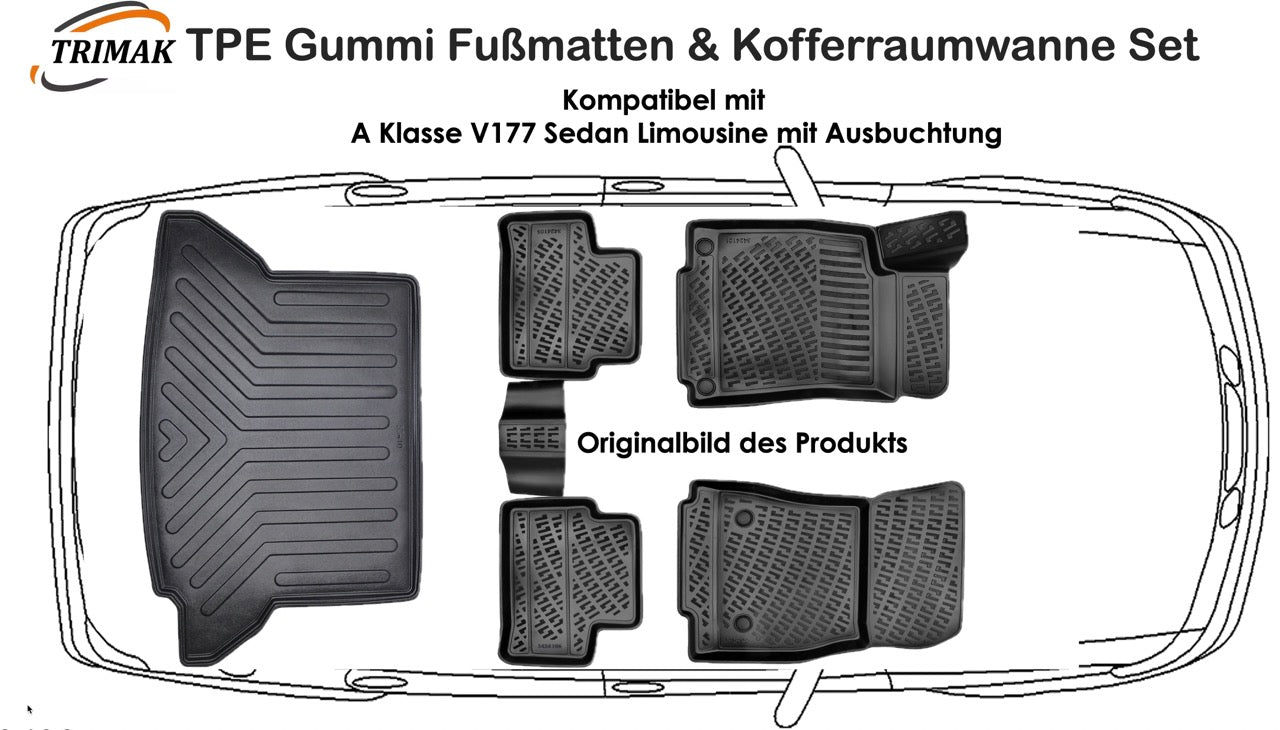 3D Fußmatten & mit Ausbuchtung Kofferraumwanne Auto Set Kompatibel mit Mercedes-Benz A Klasse V199 Sedan Limousine