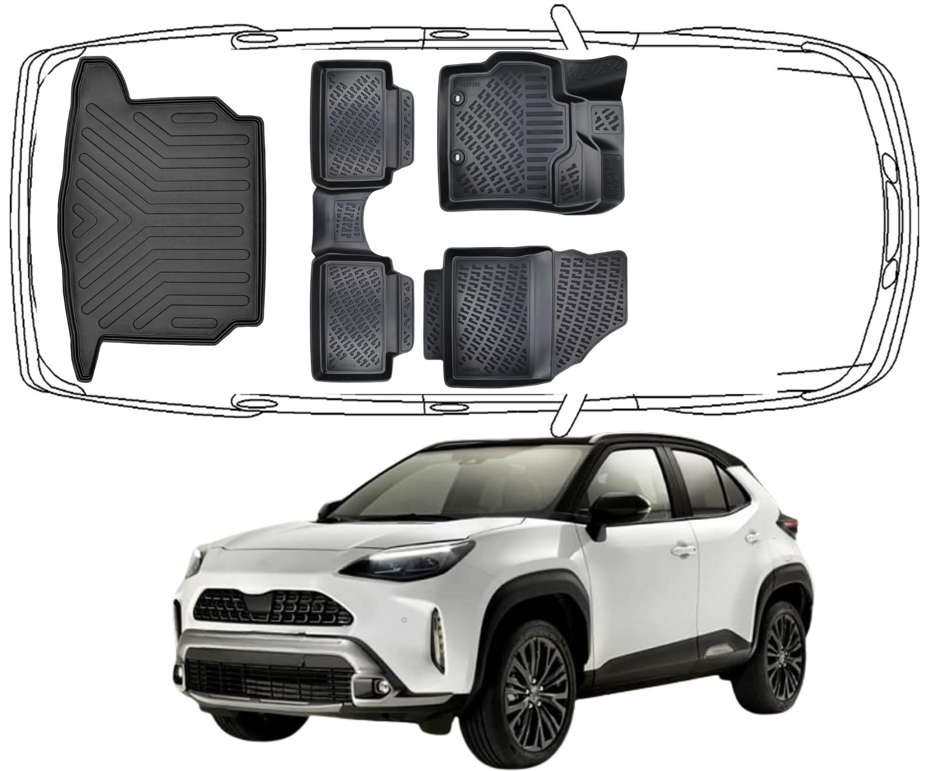 3D Fußmatten & Untere Kofferraumwanne Auto Set Kompatibel mit Toyota yaris Cross
