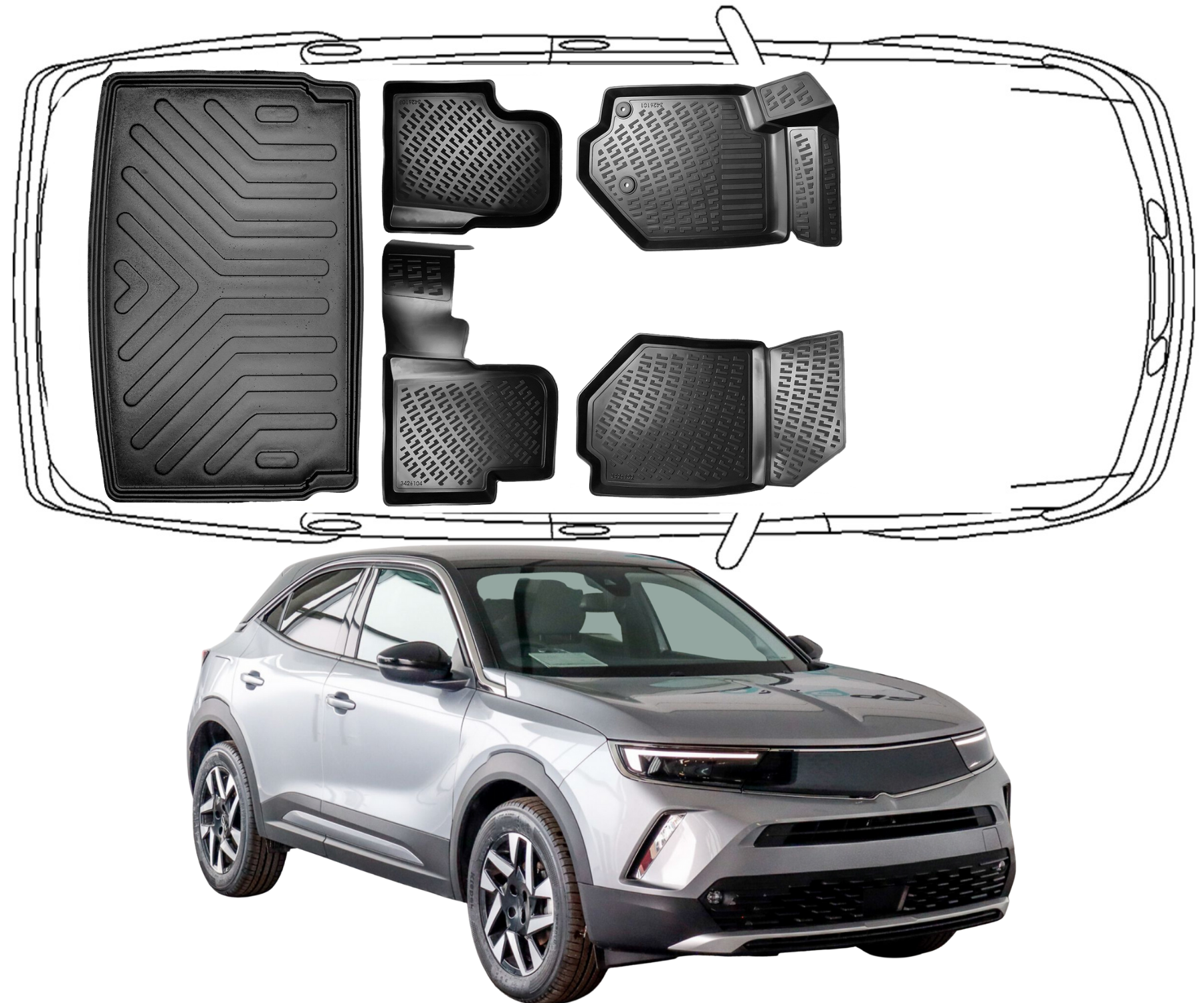 Set und Kofferraummatten Opel Mokka B ab 2021 (Obere) Auto AllWetterGummimatten und Kofferraumwanne