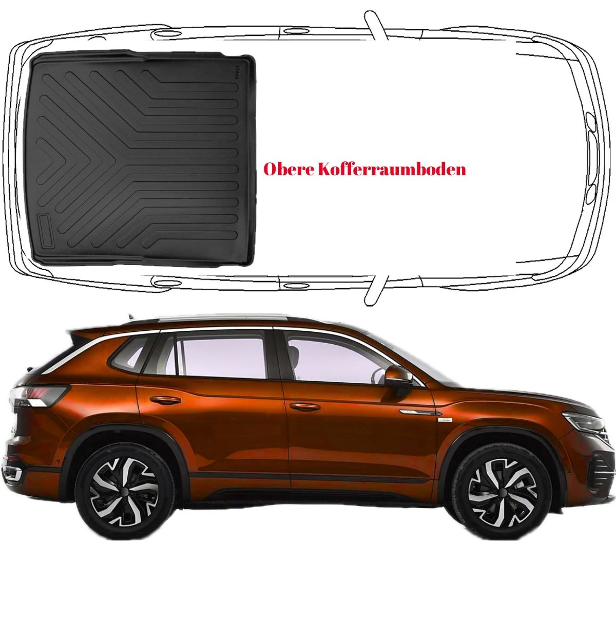 Maximaler Schutz trifft auf perfekte Passform: Die passgenauen Trimak Gummimatten wurden mithilfe modernster 3D-Laserscantechnologie speziell für Volkswagen Tayron e-TSI ab 2024 den Trimak Kofferraumwanne entwickelt.