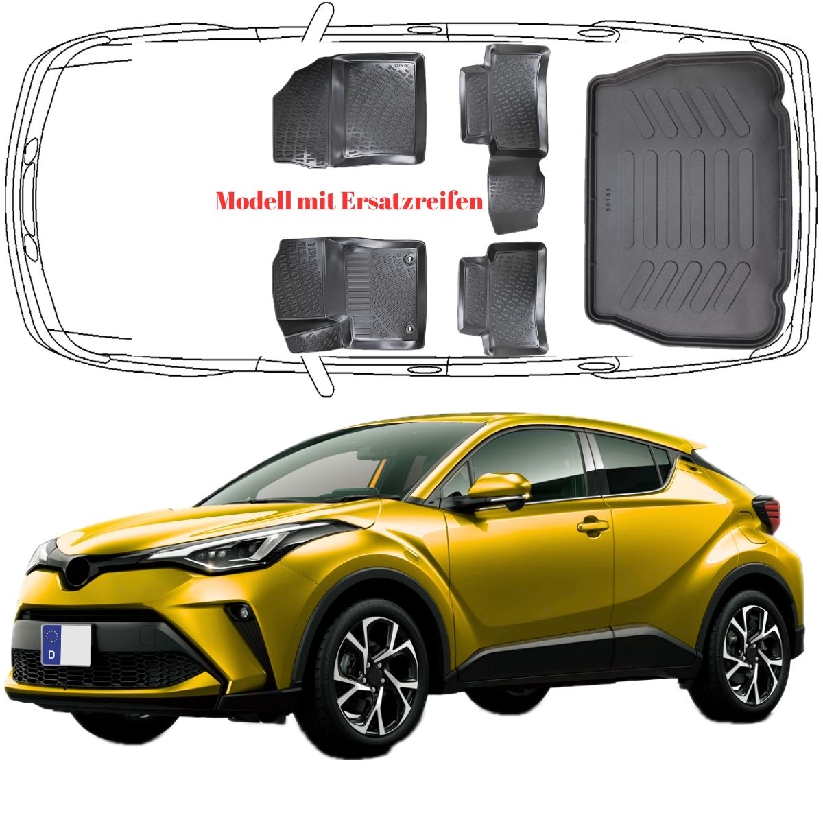 Trimak 3D Gummifußmatten für 3D Auto Fußmatten & Kofferraumwanne Set Kompatibel mit Toyota C-HR 1.Gen 2016-2023 * Modell mit Ersatzreifen