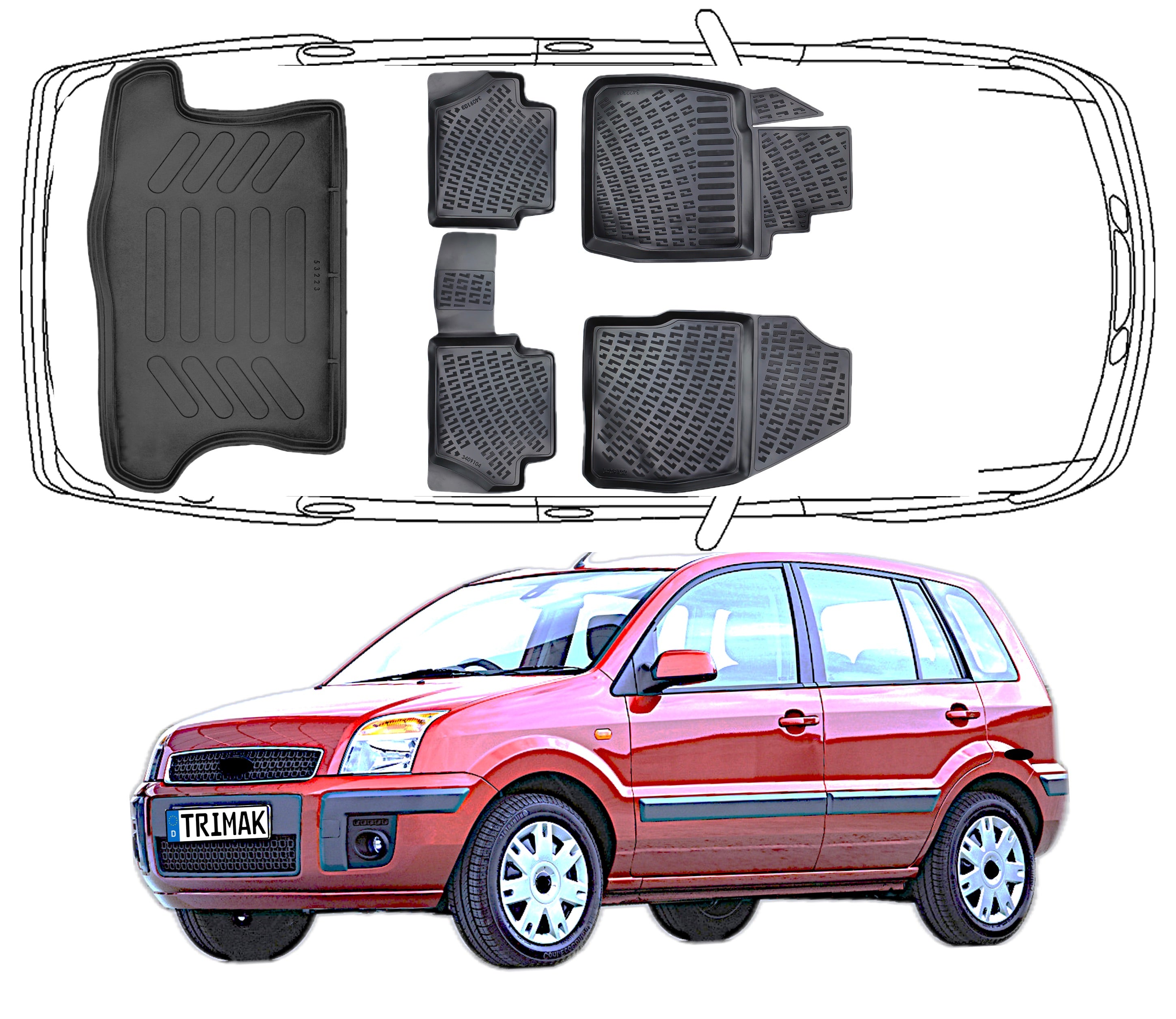3D Fußmatten & Kofferraumwanne Auto Set Kompatibel mit Ford Fusion 2002 - 2012