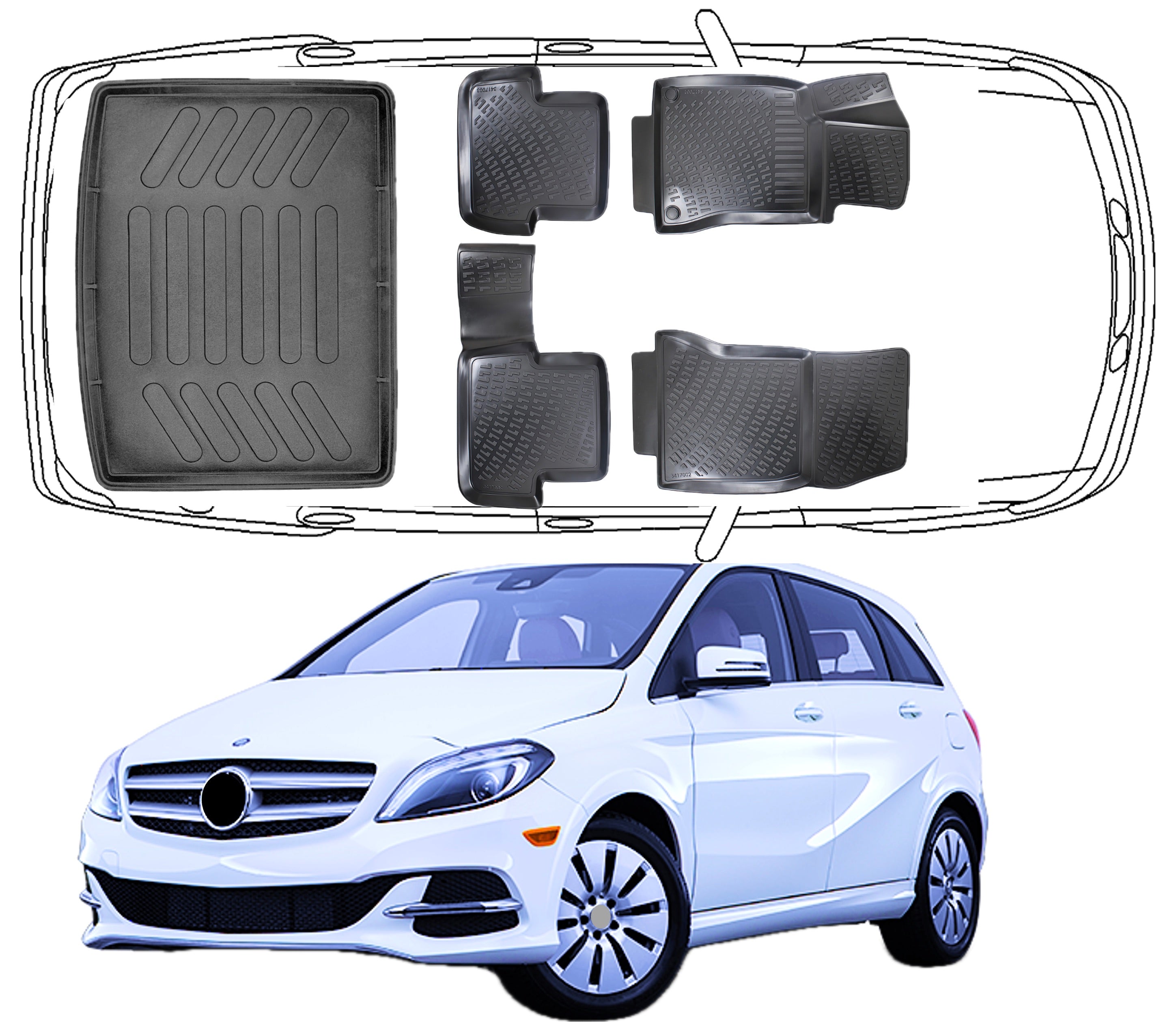 3D Fußmatten & Kofferraumwanne Auto Set Kompatibel mit Mercedes B Klasse W 242/W 246 2011 - 2018