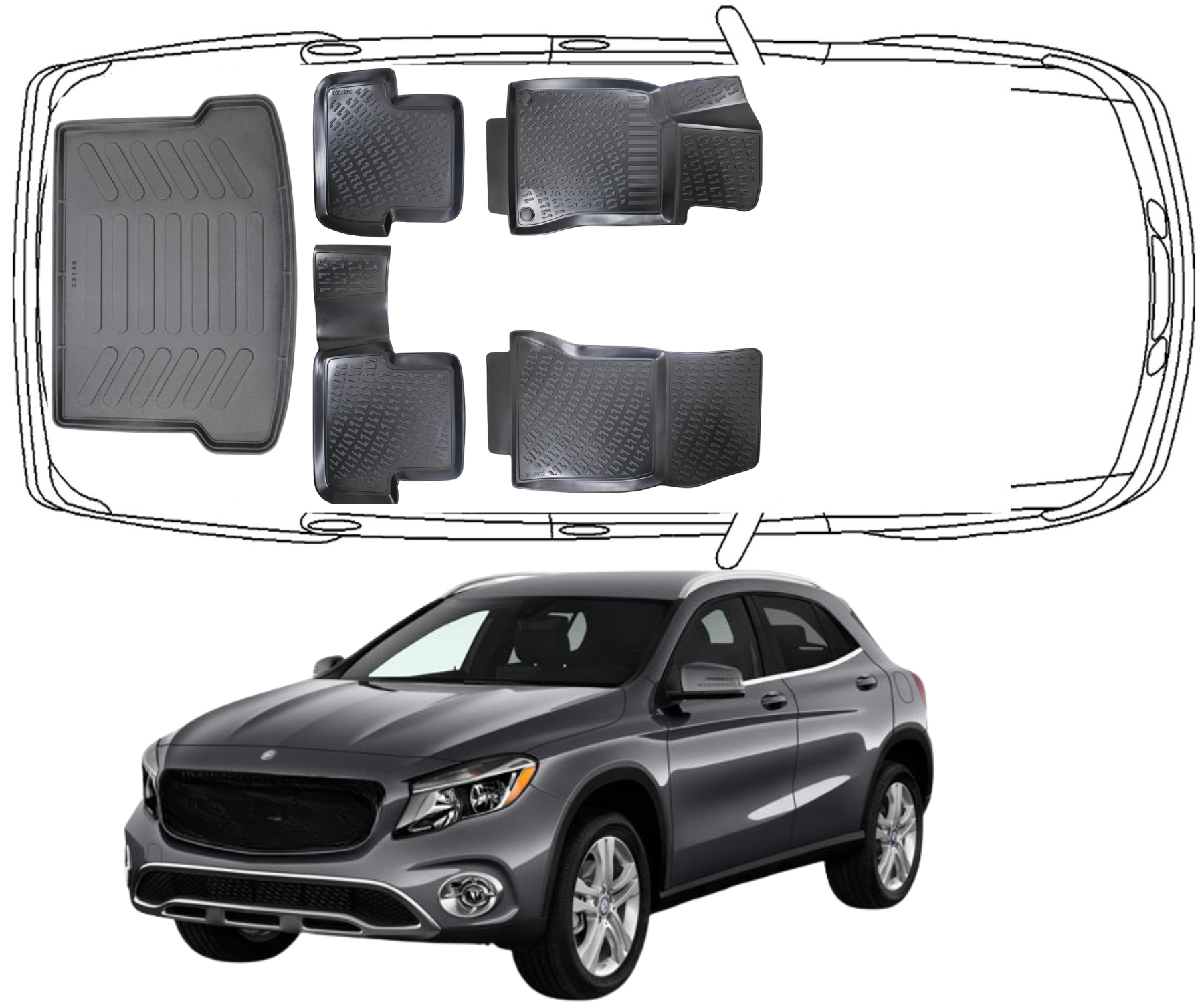 3D Fußmatten & Kofferraumwanne Auto Set Kompatibel mit Mercedes-Benz GLA X 156 2013 - 2020