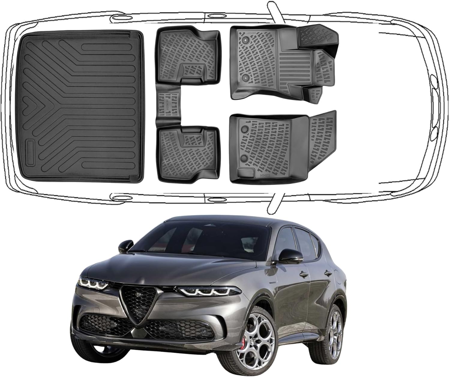 3D Fußmatten &Obere Kofferraumwanne Auto Set Kompatibel mit Alfa Romeo Tonale ab 2022