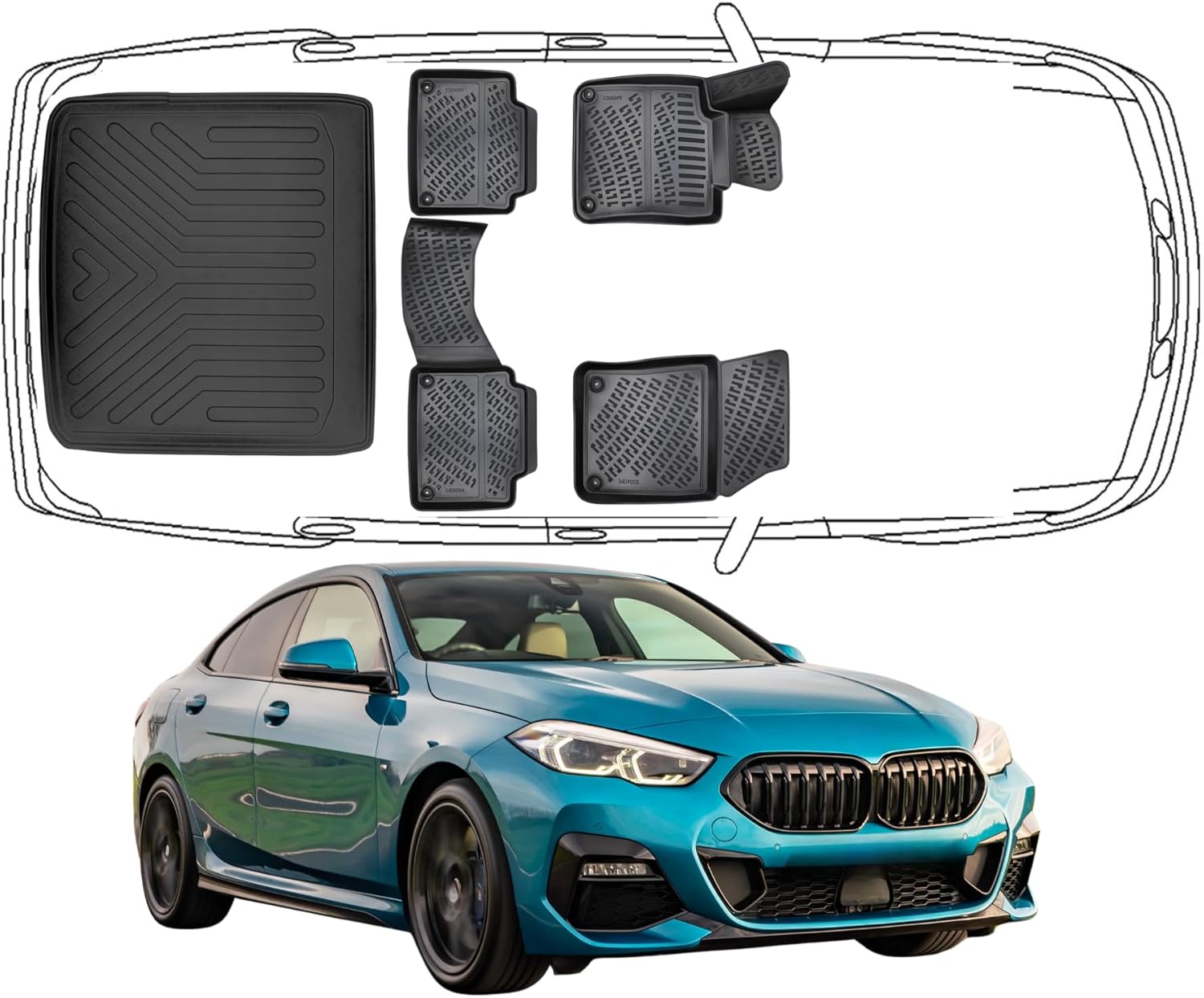 3D Fußmatten & Obere Kofferraumwanne Auto Set Kompatibel mit BMW 2ér Gran Coupe F44
