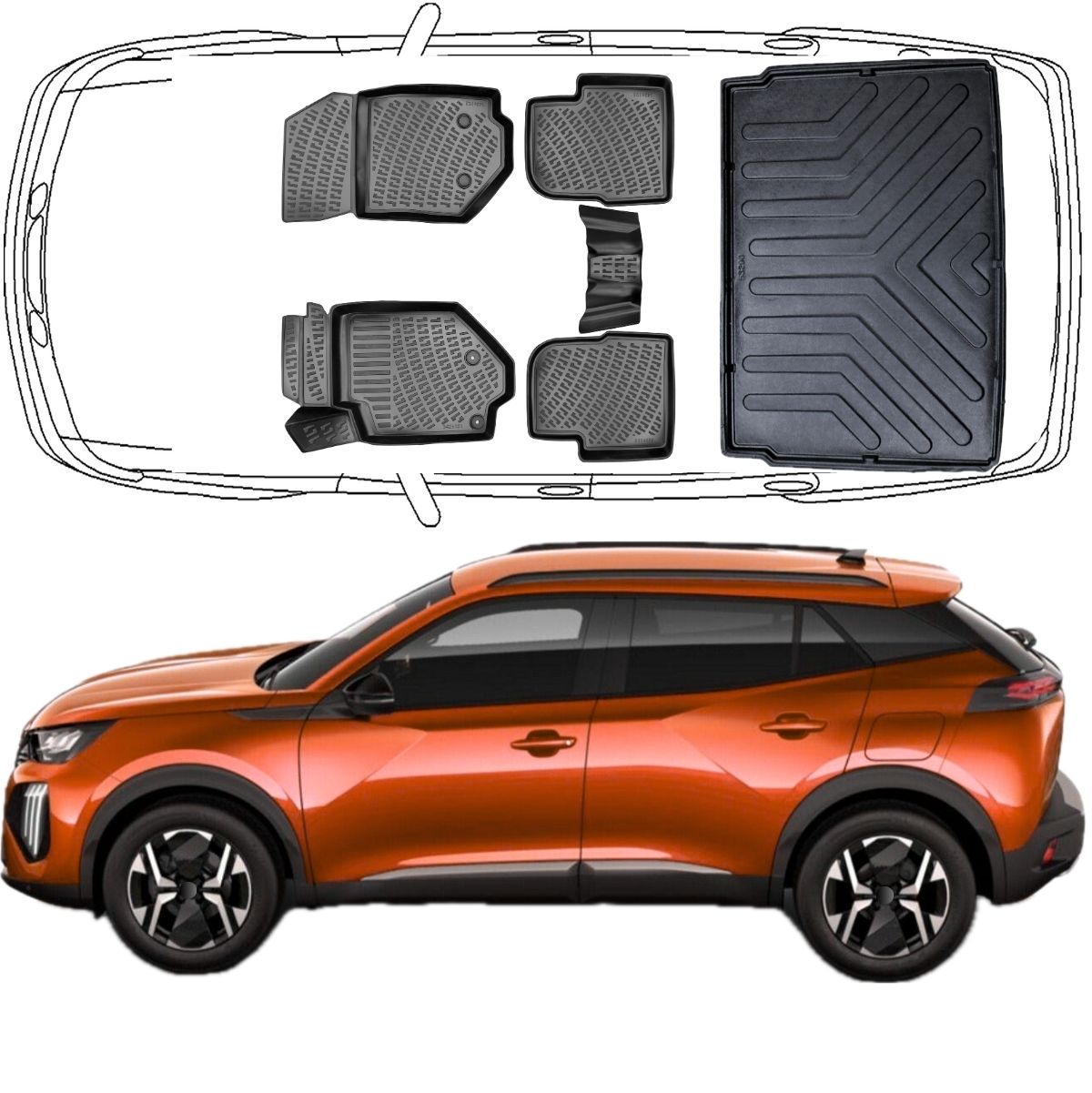 3D Fußmatten & Obere Kofferraumwanne Auto Set Kompatibel mit Peugeot 2008 2.Gen 2019 - 2024