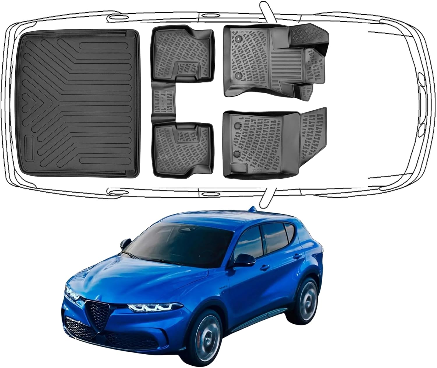 3D Fußmatten & Untere Kofferraumwanne Auto Set Kompatibel mit Alfa Romeo Tonale ab 2022