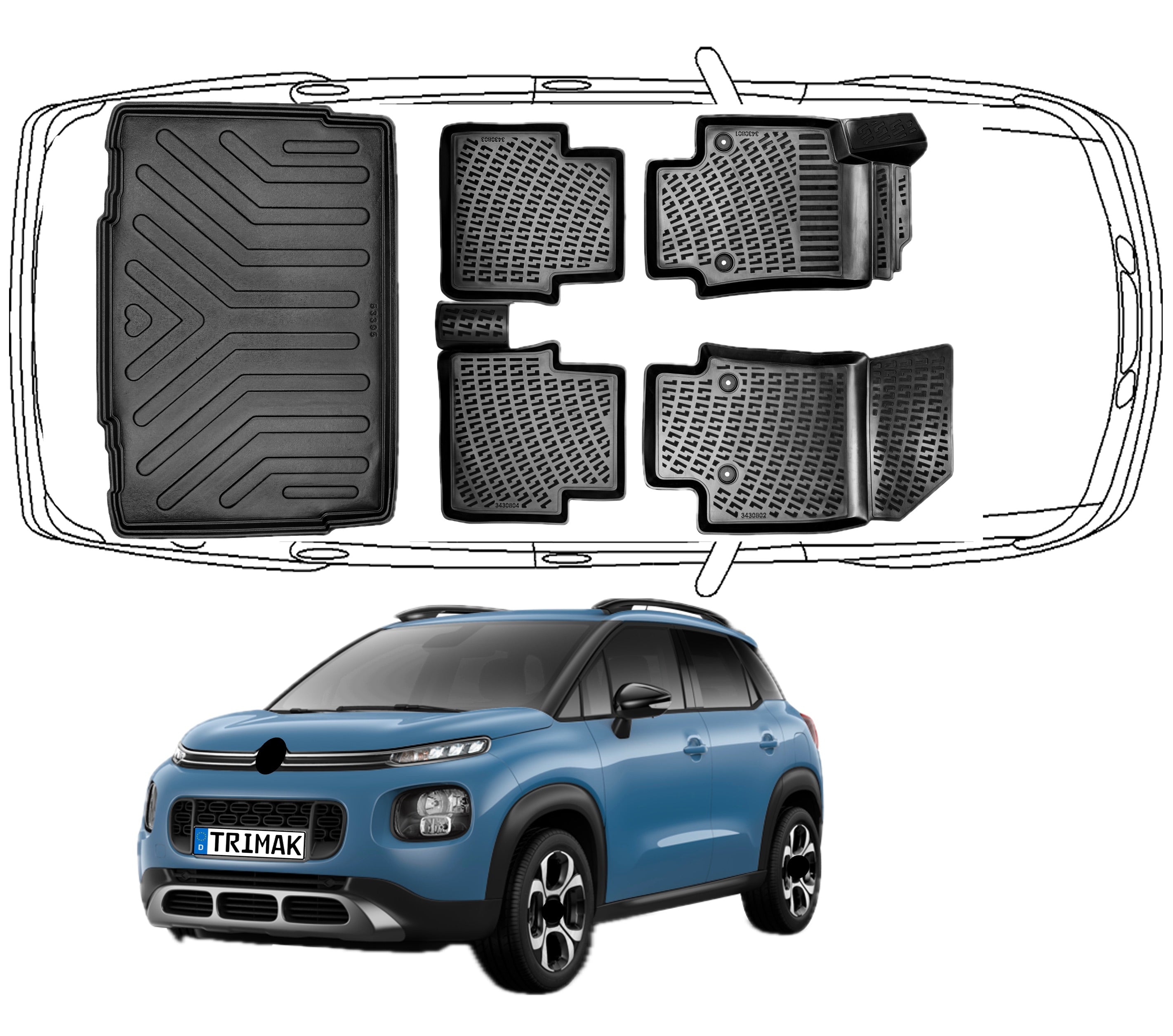 3D Fußmatten & Untere Kofferraumwanne Auto Set Kompatibel mit C3 Aircross 1.Gen 2017-2024 Verschiebbare Rücksitze