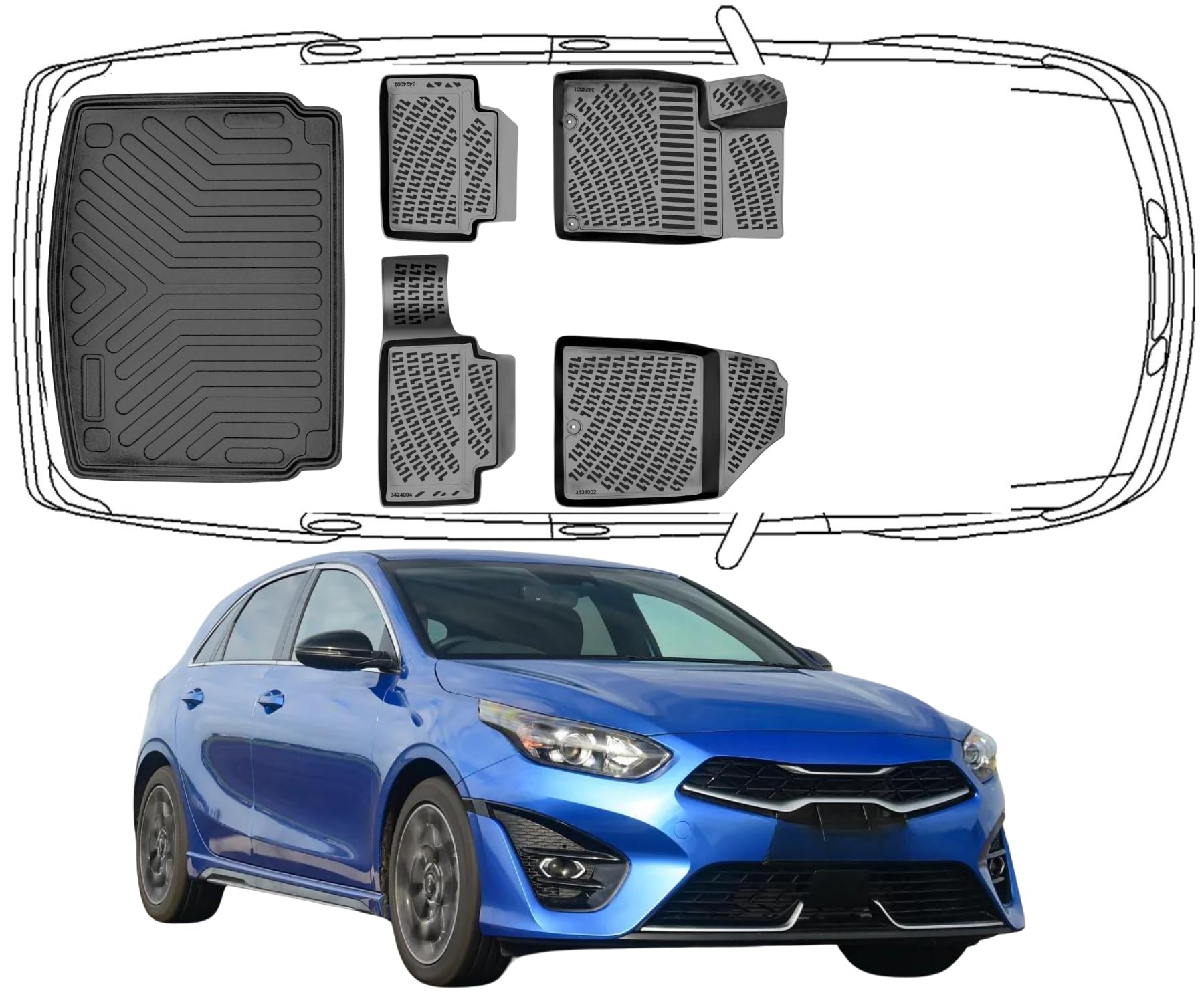 3D Fußmatten & Untere Kofferraumwanne Auto Set Kompatibel mit Kia Ceed HB Neu Logo ab 2022