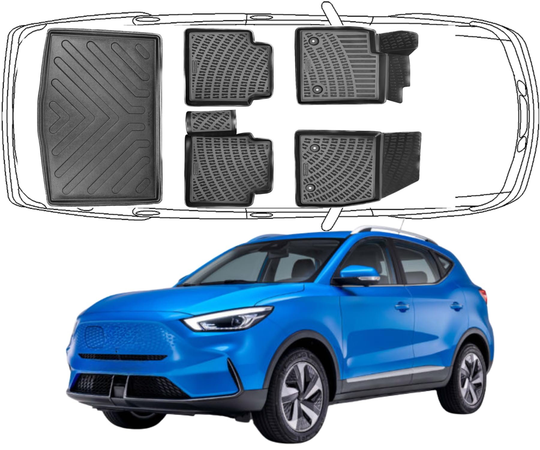 3D Fußmatten & Untere Kofferraumwanne Auto Set Kompatibel mit MG ZS EV seit 2021