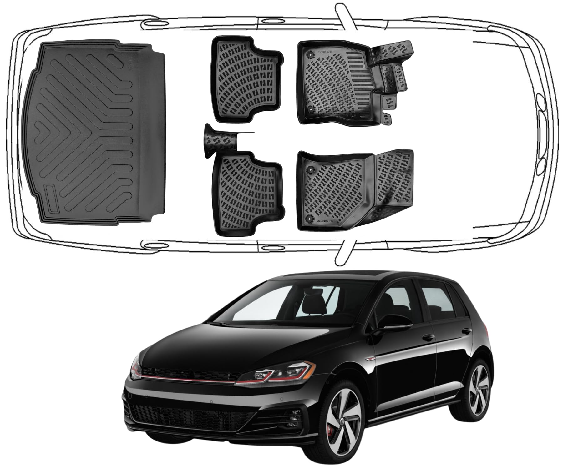 3D Fußmatten & Untere Kofferraumwanne Auto Set Kompatibel mit VW Golf 7 2012-2020