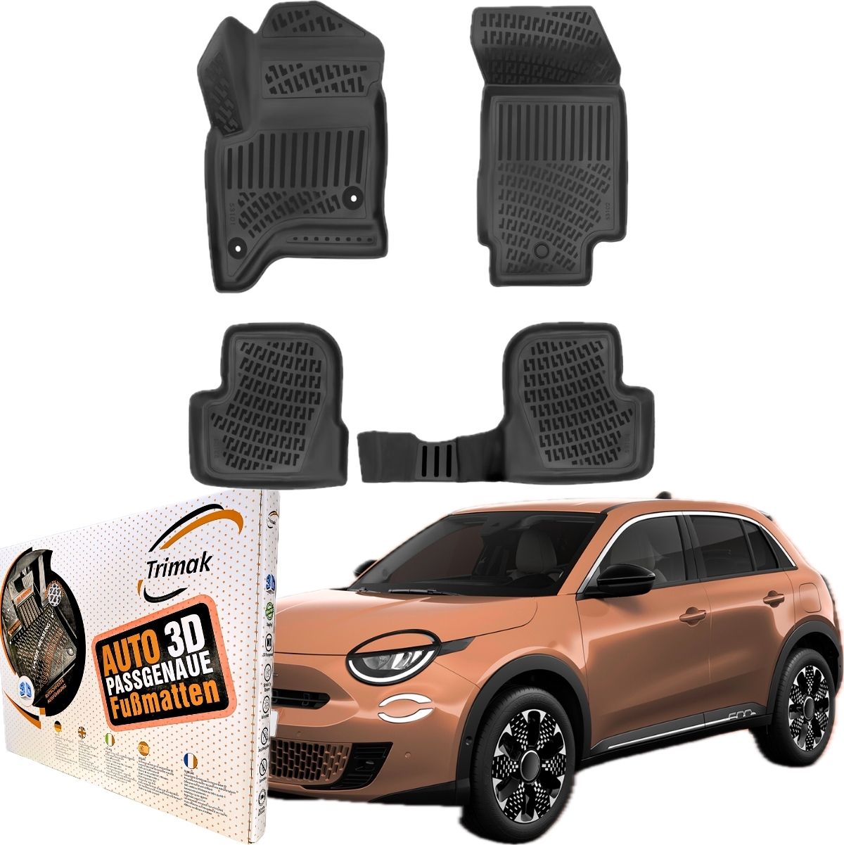 Maximaler Schutz trifft auf perfekte Passform: Die passgenauen Trimak Gummimatten wurden mithilfe modernster 3D-Laserscantechnologie speziell für den Trimak Fiat 600 Hybrid ab 2024 Auto AllWetter Gummimatten entwickelt.