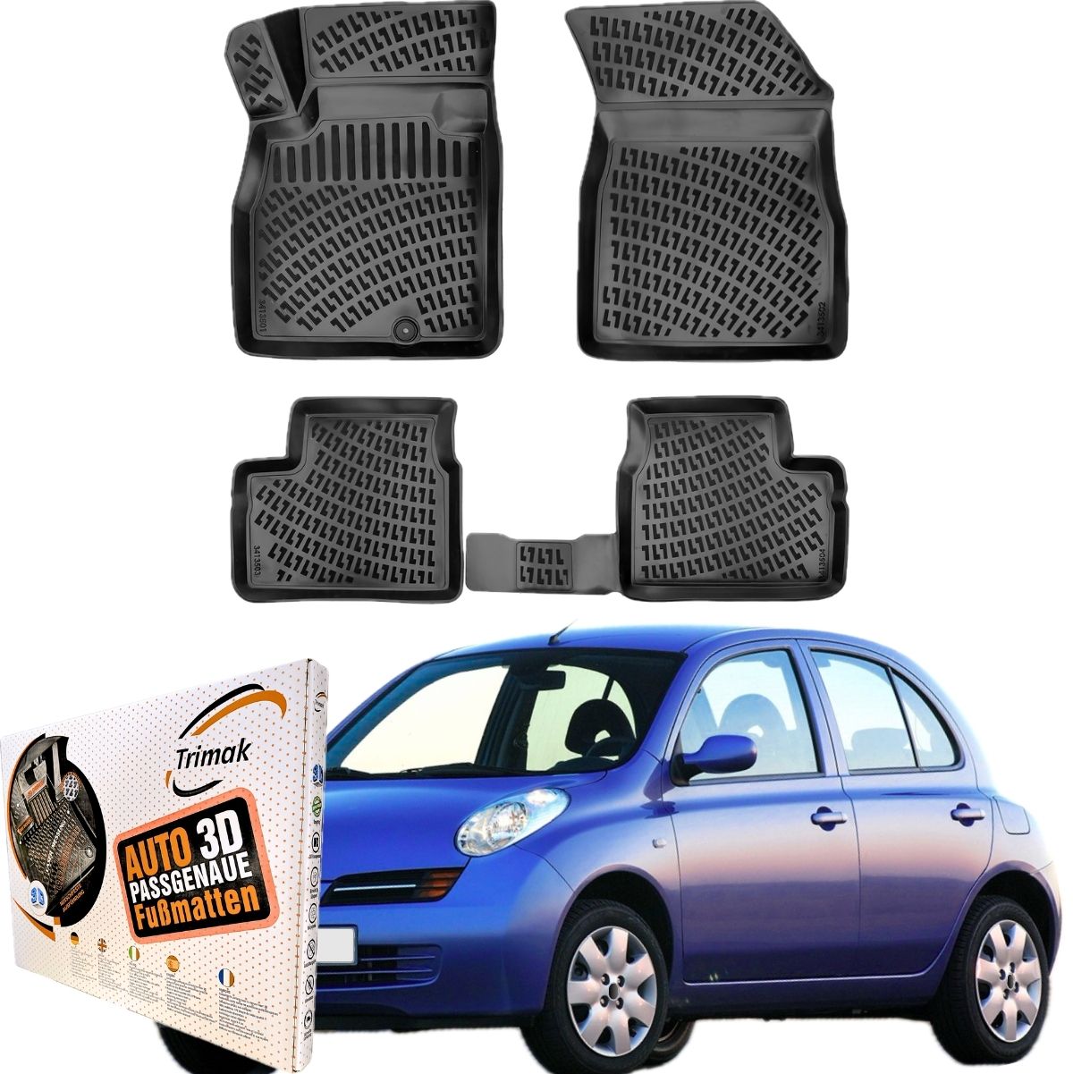 Maximaler Schutz trifft auf perfekte Passform: Die passgenauen Trimak Gummimatten wurden mithilfe modernster 3D-Laserscantechnologie speziell für den Trimak Nissan Micra 3.Gen K12 2003-2010 Auto AllWetter Gummimatten entwickelt.