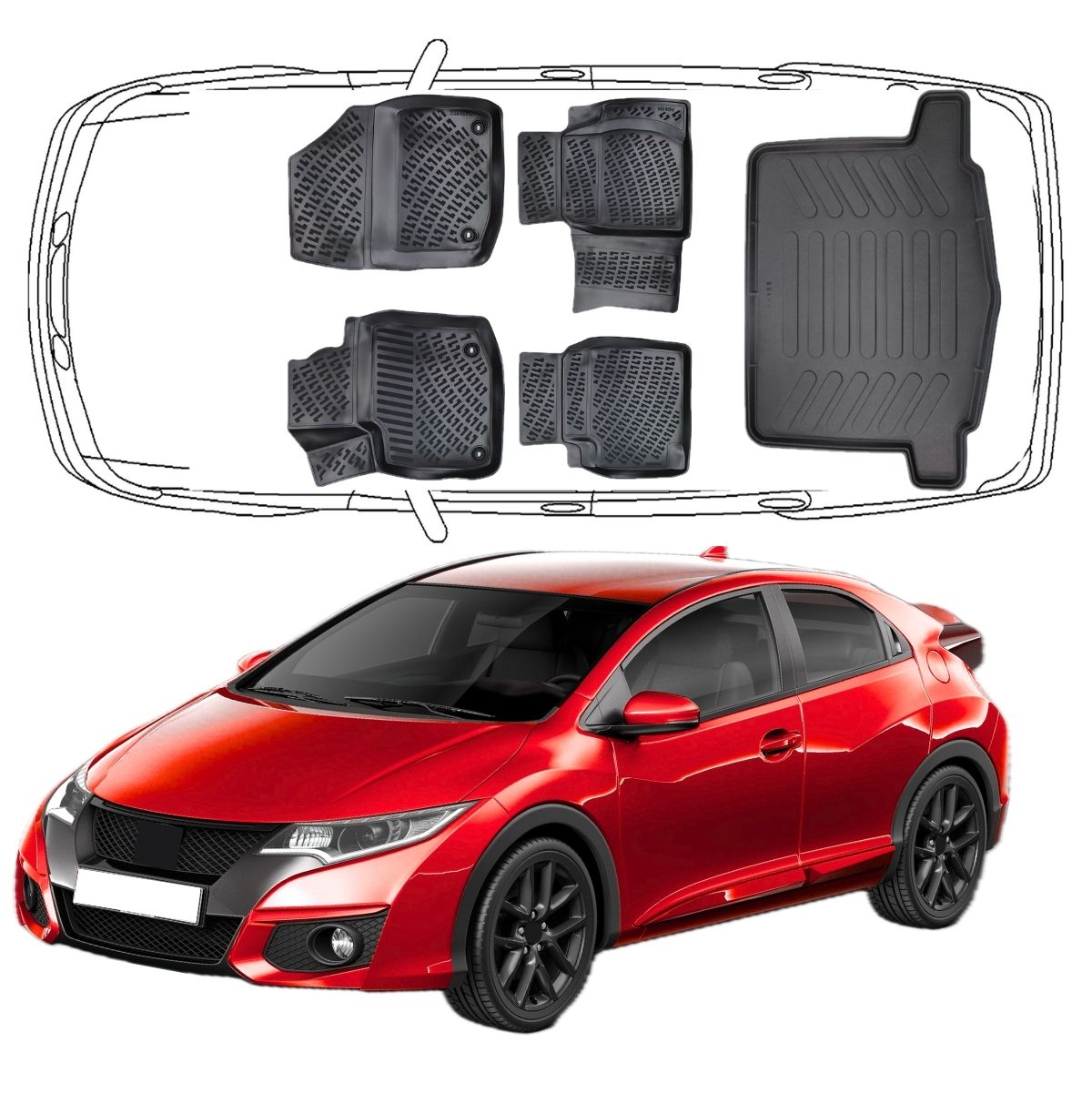 Maximaler Schutz trifft auf perfekte Passform: Die passgenauen Trimak Gummimatten wurden mithilfe modernster 3D-Laserscantechnologie speziell für den 3D Auto Fußmatten & Kofferraumwanne Set Kompatibel mit Honda Civic 9.Gen 2011 - 2016 entwickelt.