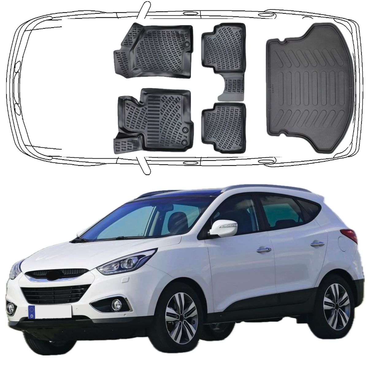 Maximaler Schutz trifft auf perfekte Passform: Die passgenauen Trimak Gummimatten wurden mithilfe modernster 3D-Laserscantechnologie speziell für den 3D Auto Fußmatten & Kofferraumwanne Set Kompatibel mit Hyundai IX35 2009-2015 entwickelt.