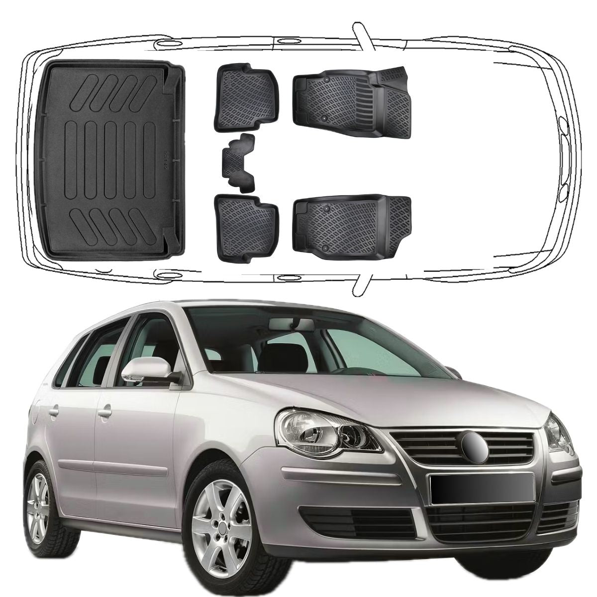 Maximaler Schutz trifft auf perfekte Passform: Die passgenauen Trimak Gummimatten wurden mithilfe modernster 3D-Laserscantechnologie speziell für den 3D Auto Fußmatten & Kofferraumwanne Set Kompatibel mit VW Polo IV 2001–2009 entwickelt.