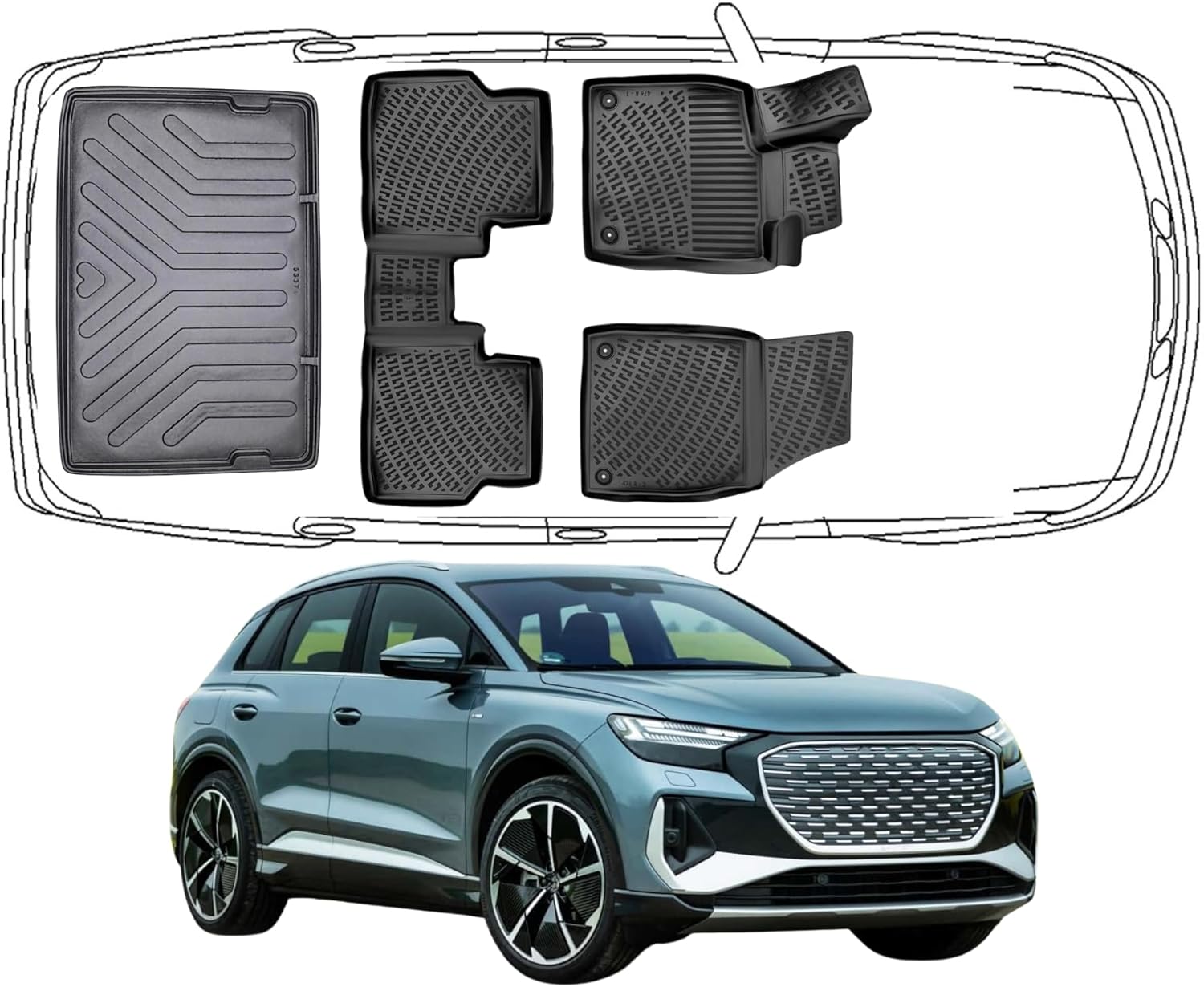 3D Fußmatten & Kofferraumwanne Set Kompatibel mit Audi Q4 e-tron 2021-