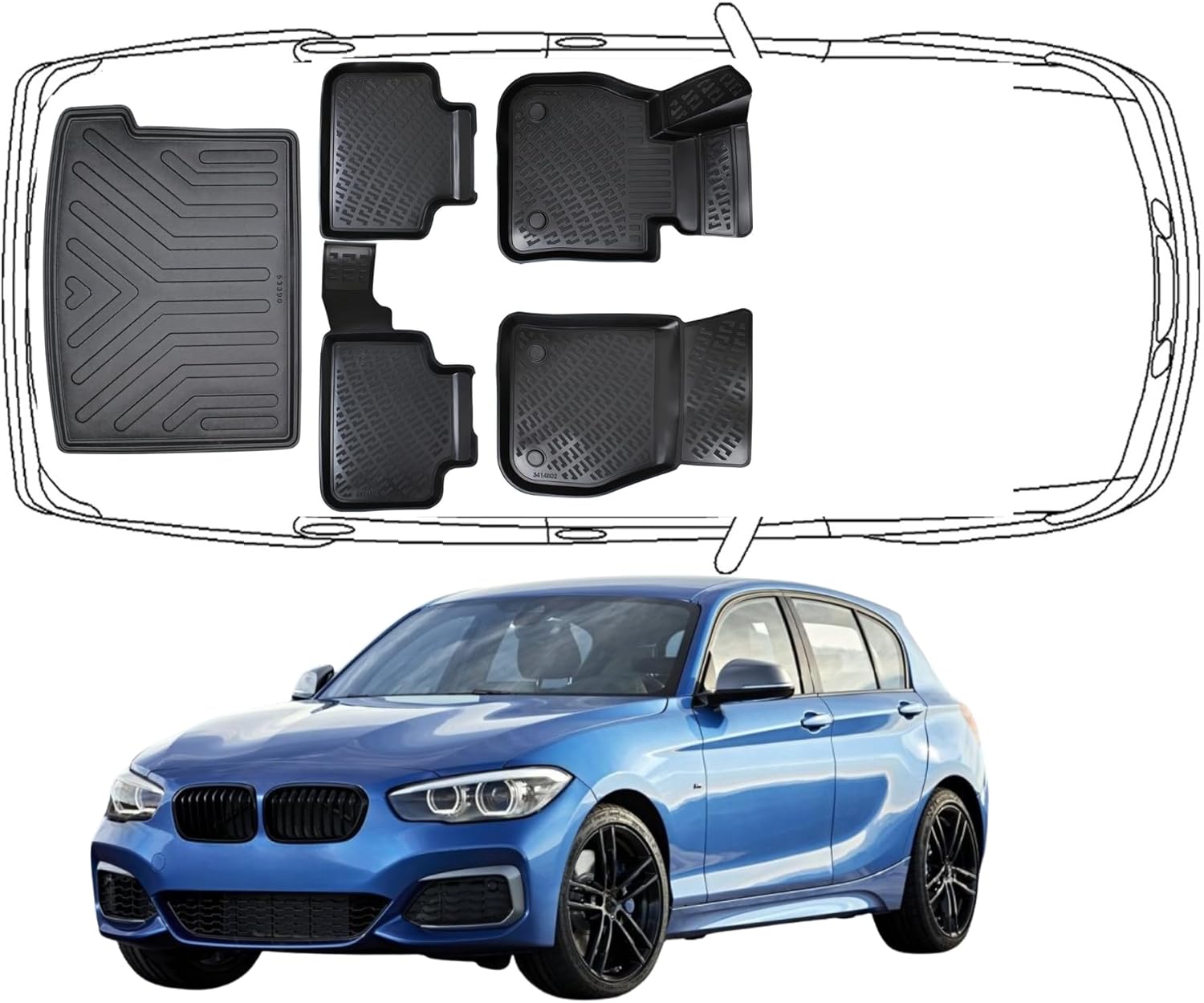3D Fußmatten & Kofferraumwanne Auto Set Kompatibel mit BMW 1er F20 2011 - 2019