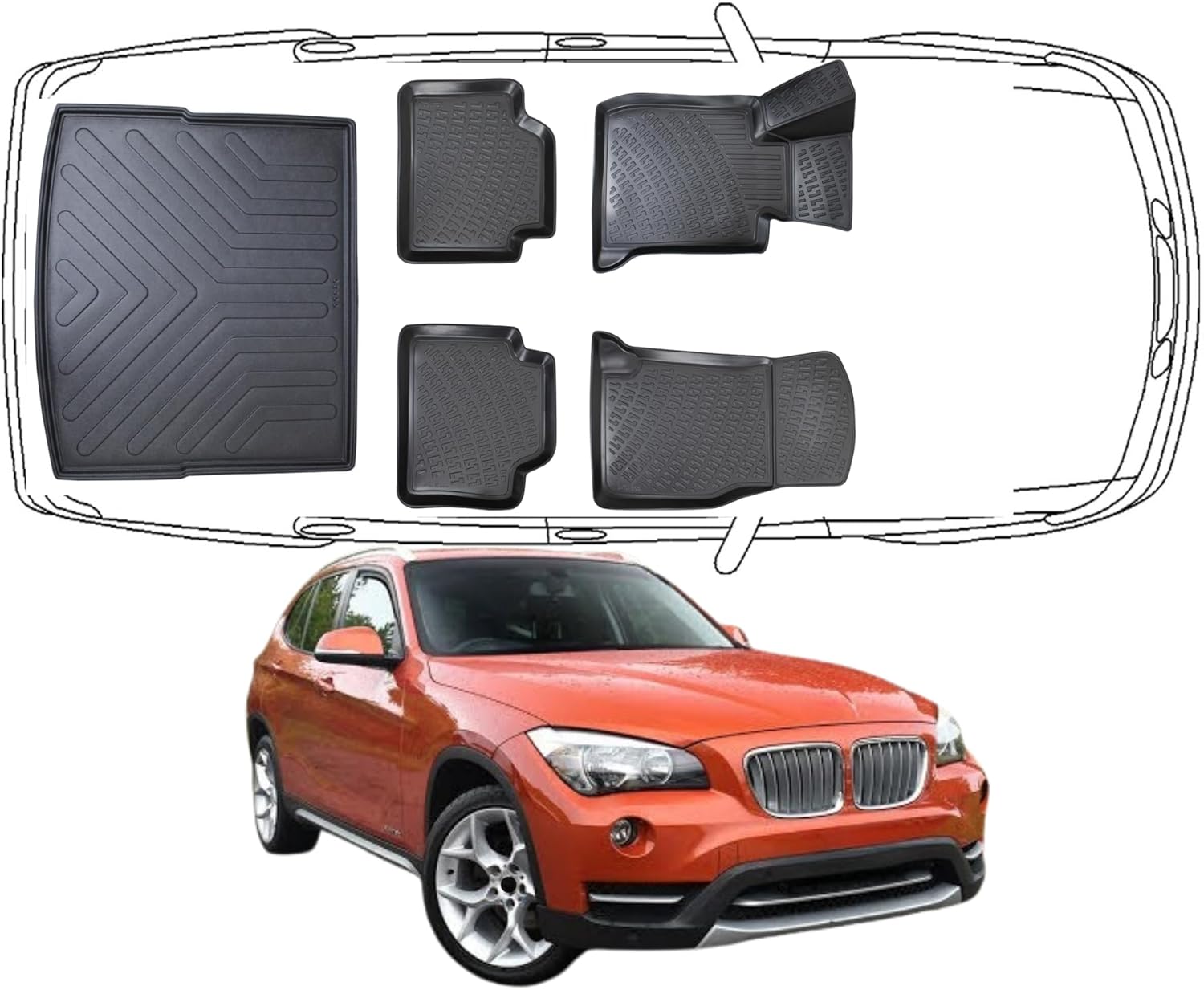 3D Fußmatten & Kofferraumwanne Auto Set Kompatibel mit BMW X1 E84 2009 - 2015