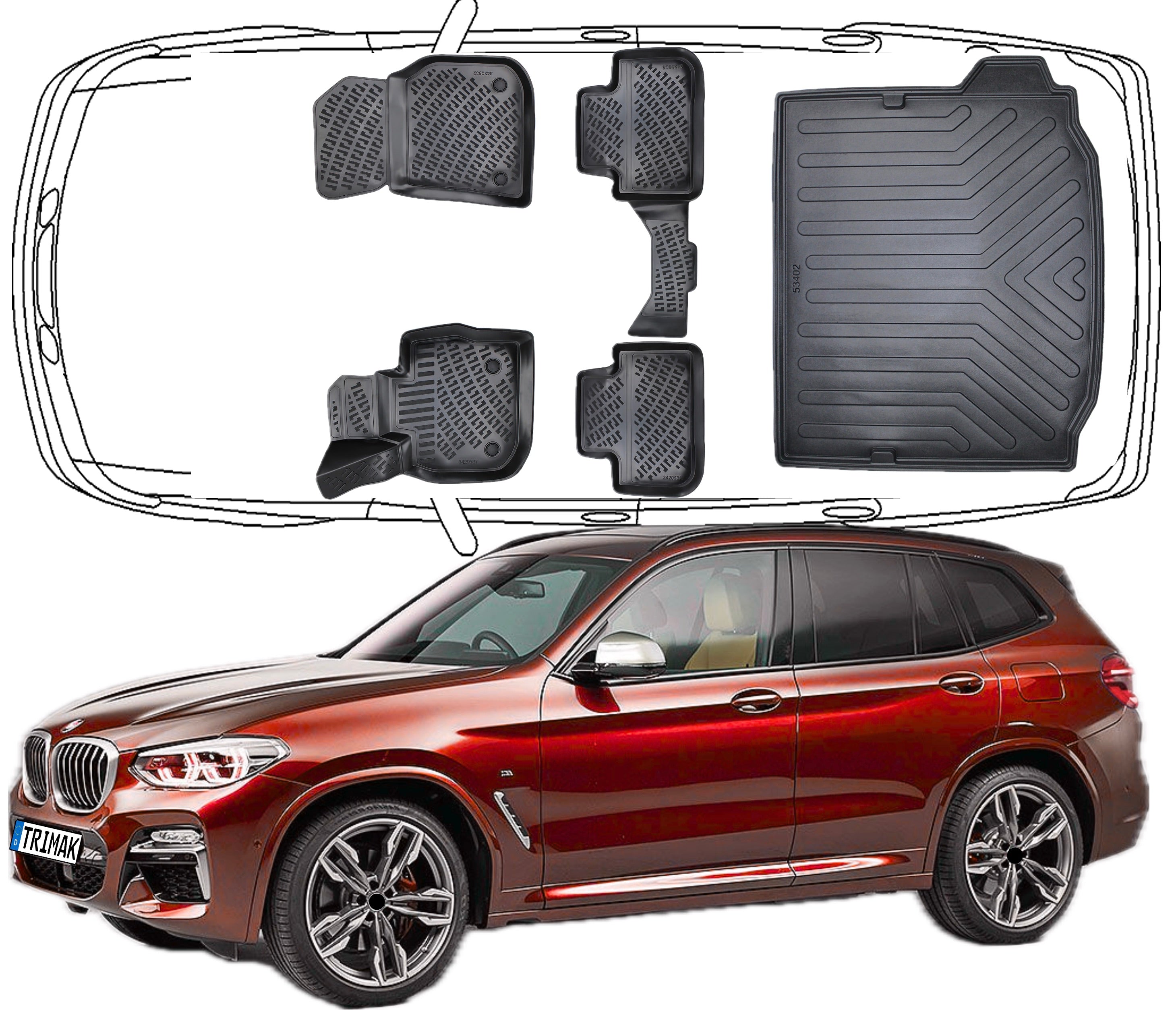 3D Fußmatten & Kofferraumwanne Auto Set Kompatibel mit BMW X3 G01 2017 - 2024 Benzin&Diesel