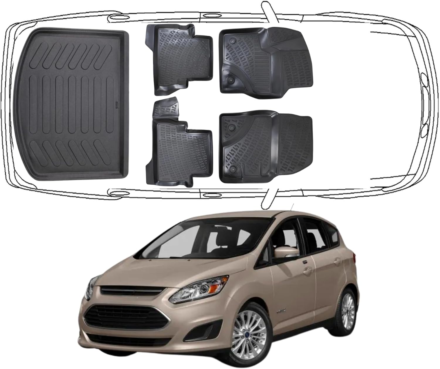 3D Fußmatten & Kofferraumwanne Auto Set Kompatibel mit Ford C-Max 2.Gen 2010 - 2019