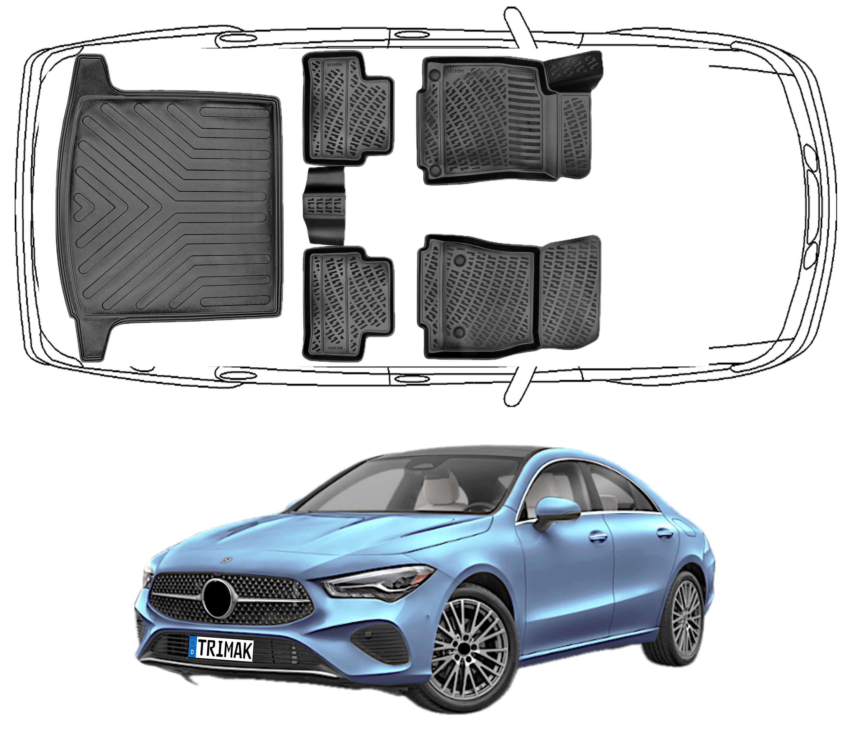 3D Fußmatten & Kofferraumwanne Auto Set Kompatibel mit Mercedes CLA 2.Gen 2019 - 2024 C118