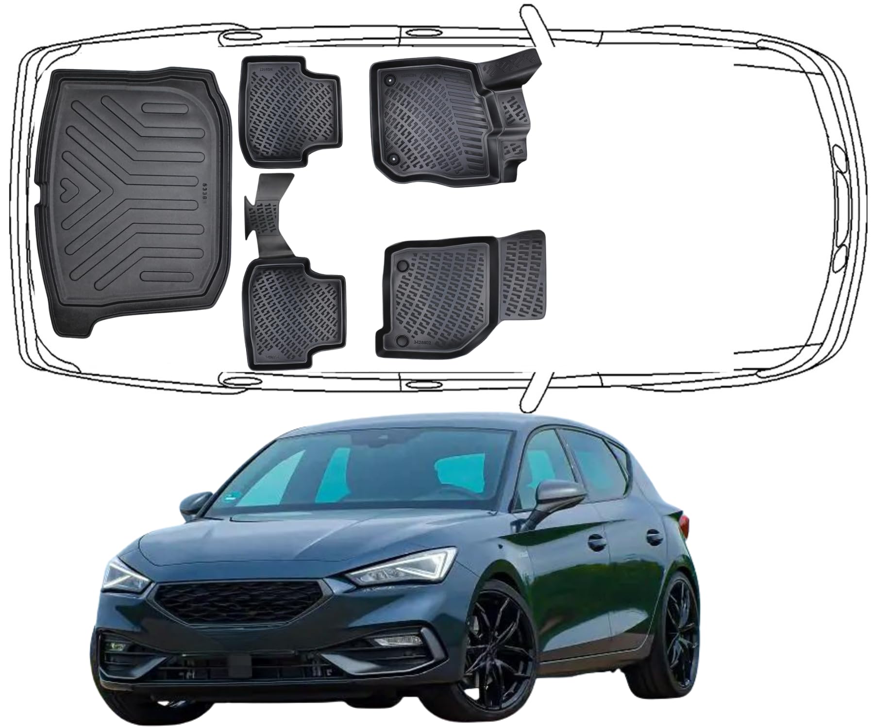 3D Fußmatten & Kofferraumwanne Auto Set Kompatibel mit Seat / Cupra Leon 4 HB eTSIe 2020 - 2026