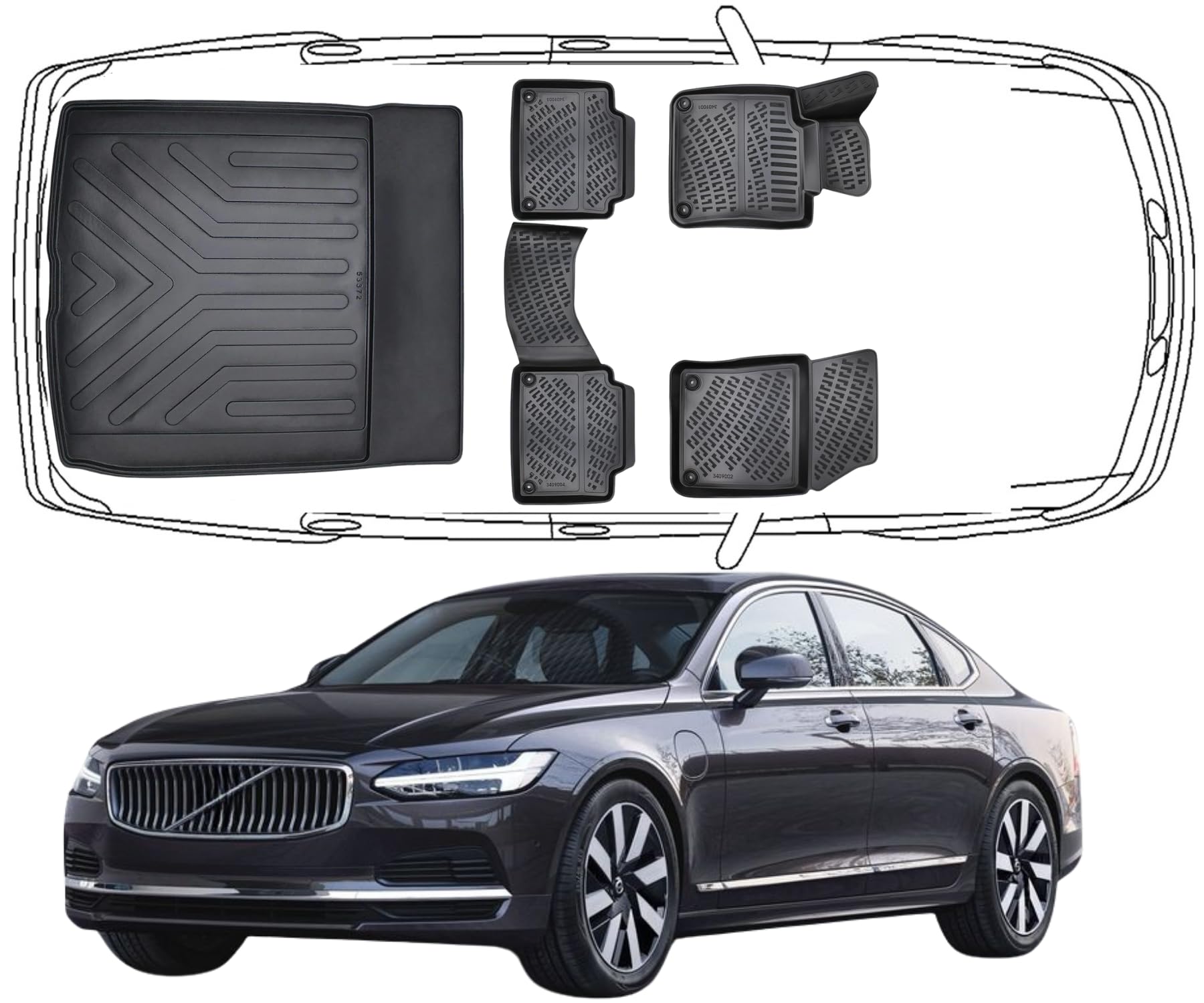 3D Fußmatten & Kofferraumwanne Auto Set Kompatibel mit Volvo S90 2016 - 2025