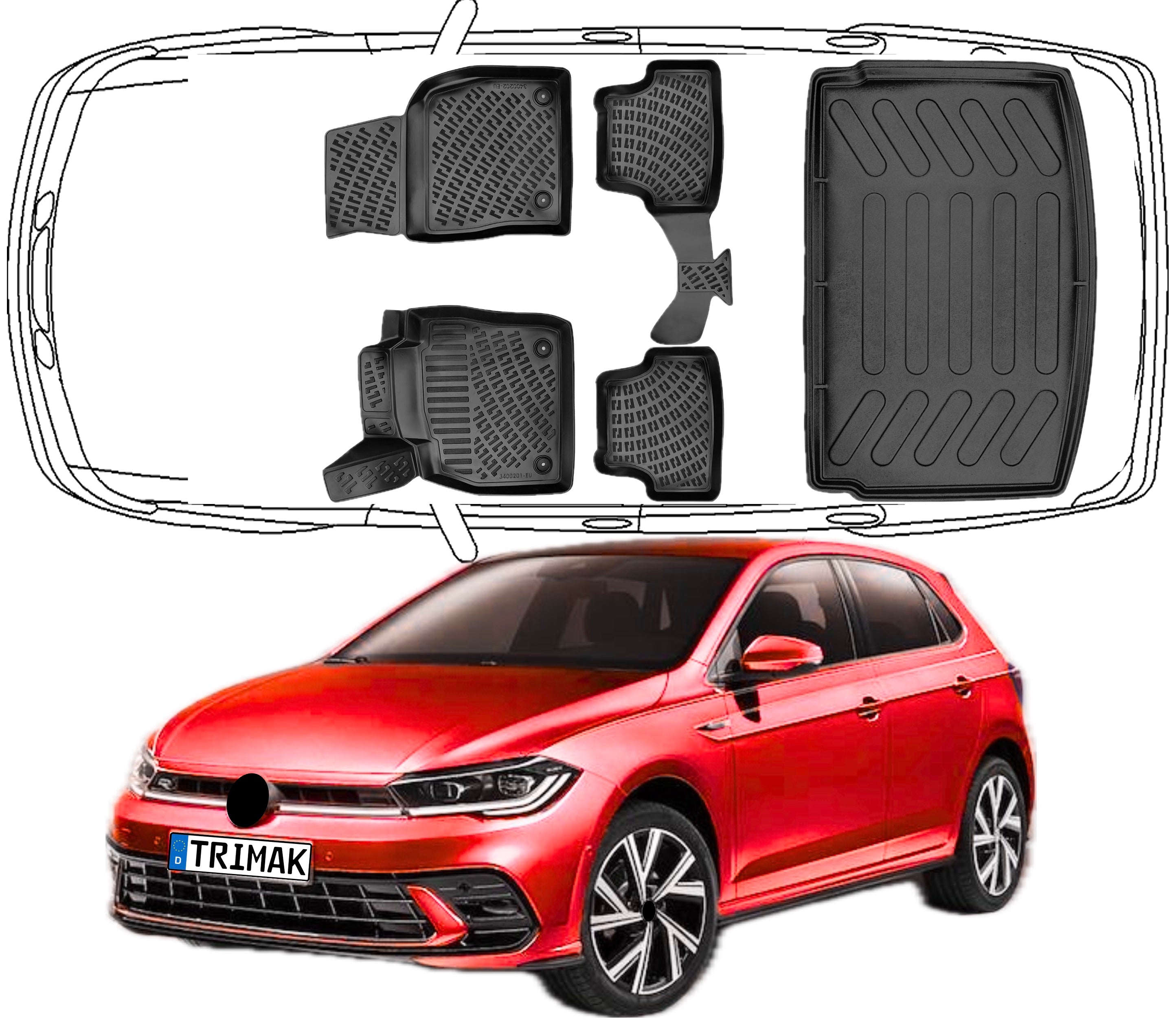 3D Fußmatten & Obere Kofferraumwanne Auto Set Kompatibel mit VW Polo VI 2017 -2024