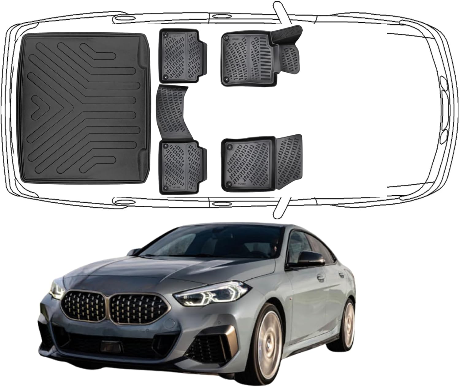 3D Fußmatten & Untere Kofferraumwanne Auto Set Kompatibel mit BMW 2ér Gran Coupe F44