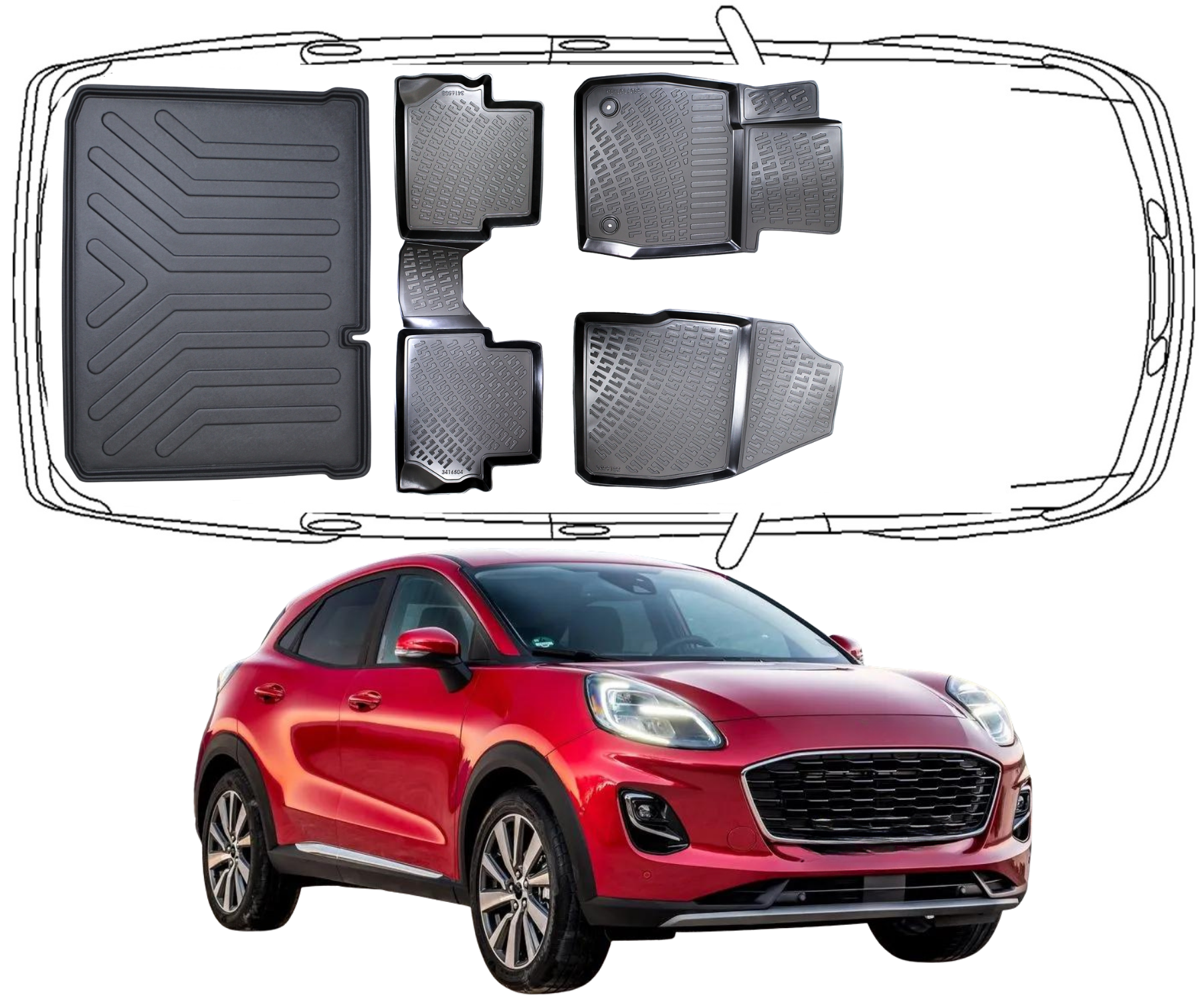 Fußmatten & Obere Kofferraumwanne Auto Set Kompatibel mit Ford Puma 2019 - 2024