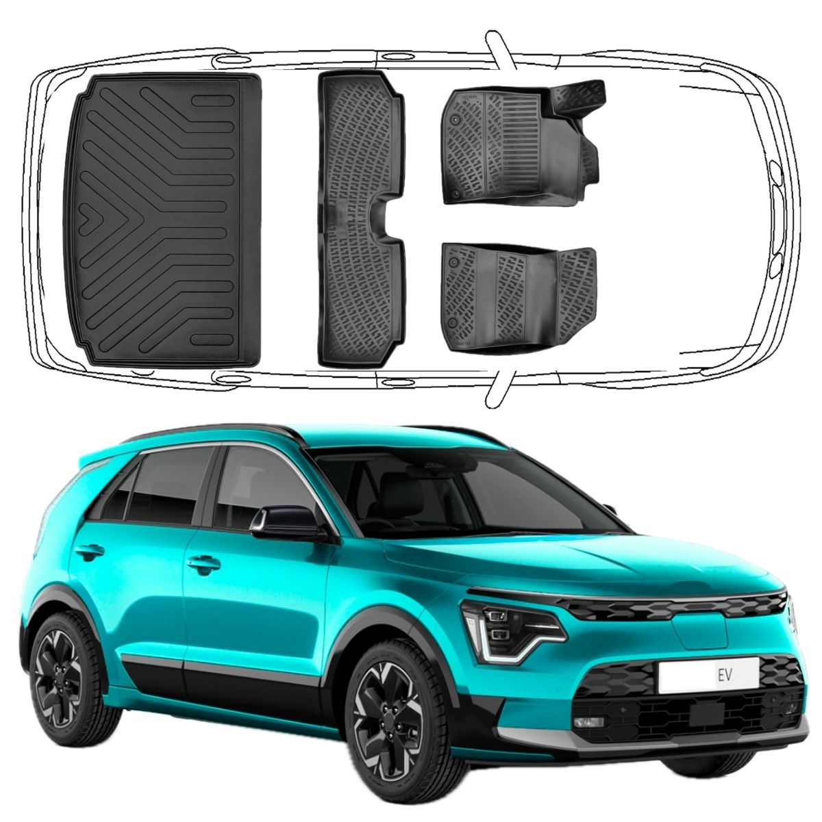 Set und Untere Kofferraummatte Kia Niro EV verstellbar Kofferraumboden