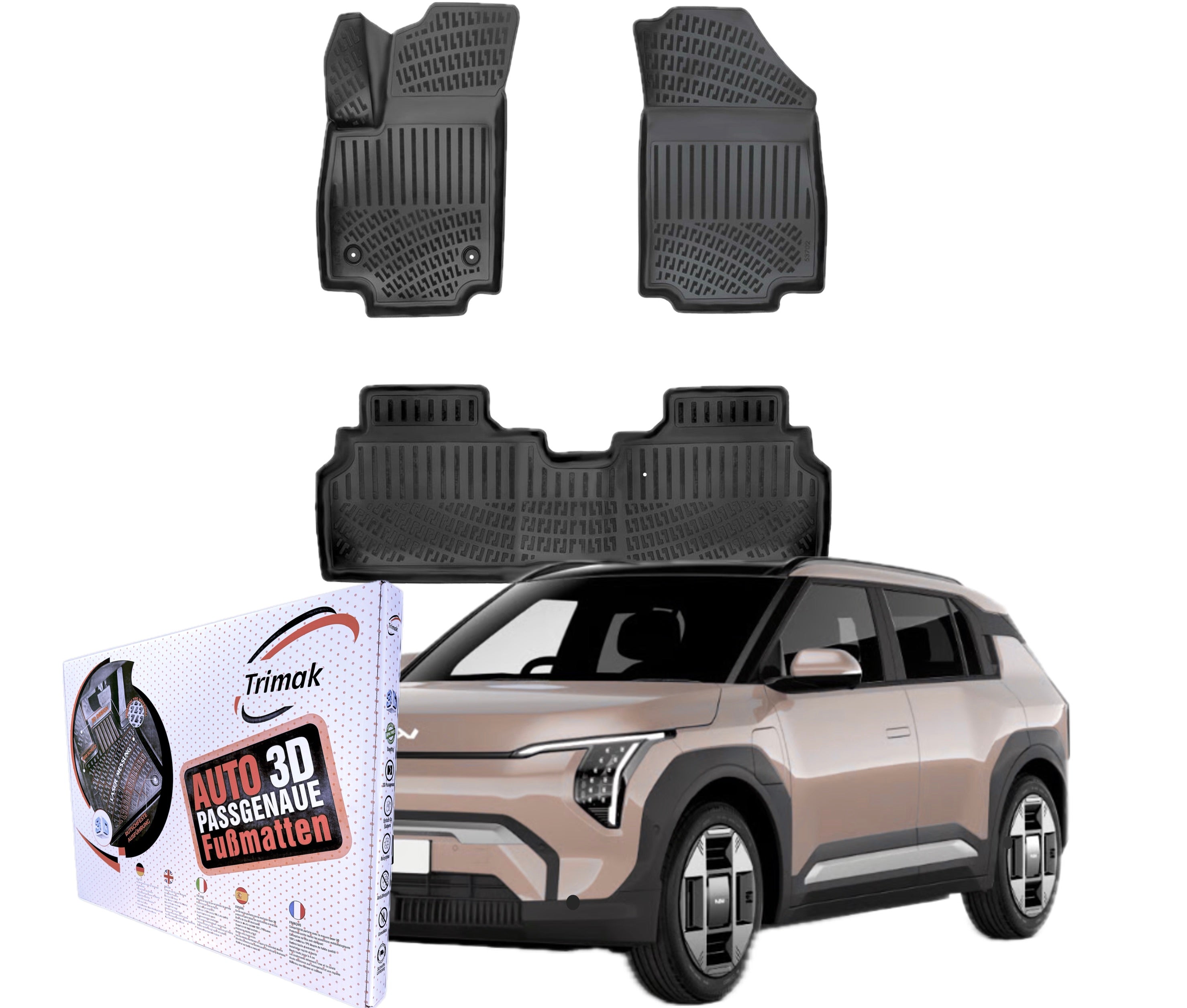 Maximaler Schutz trifft auf perfekte Passform: Die passgenauen Trimak Gummimatten wurden mithilfe modernster 3D-Laserscantechnologie speziell für den Trimak Kia EV3 ab 2024 Auto AllWetterGummimatten entwickelt.