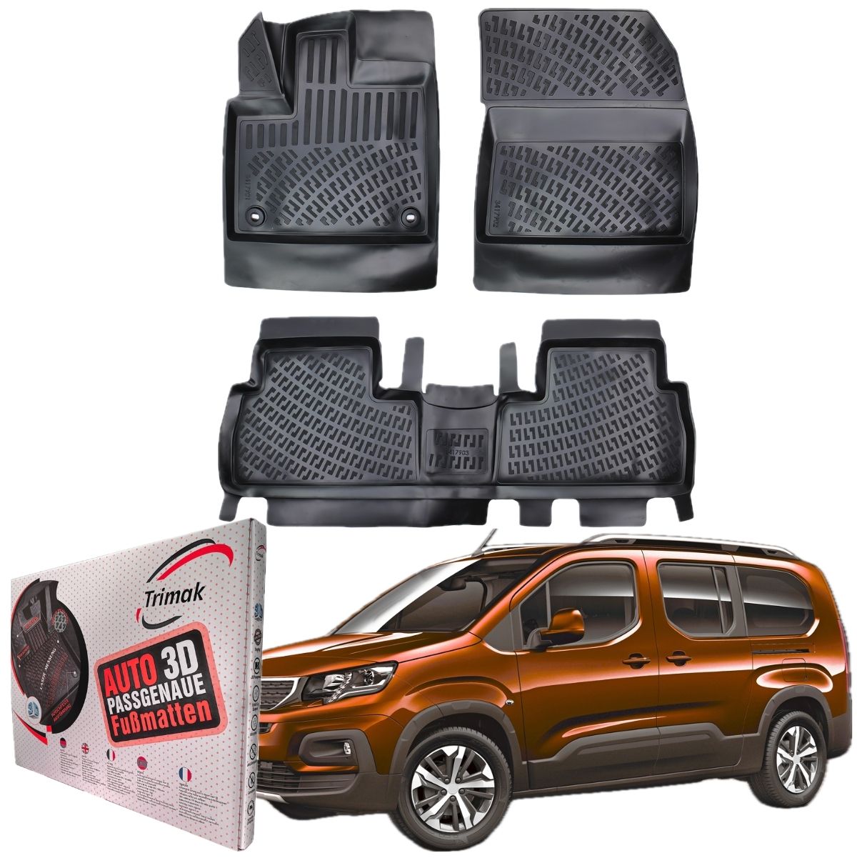 • Trimak 3D Gummifußmatten für Trimak Peugeot Rifter ab 2018 Auto Allwetter Gummimatten