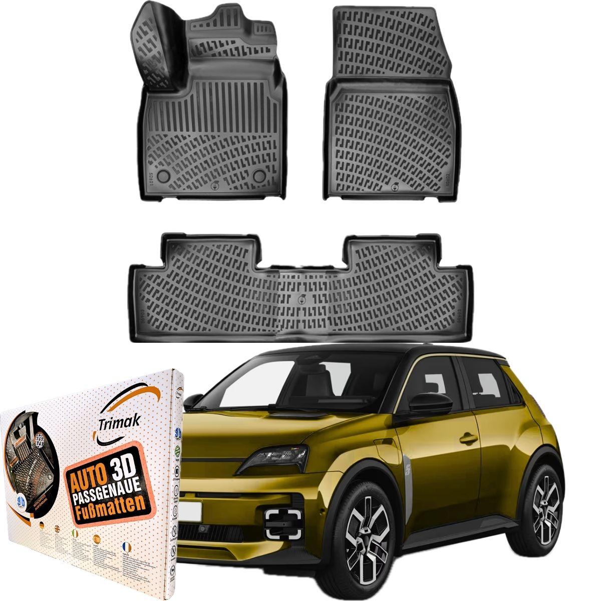 Maximaler Schutz trifft auf perfekte Passform: Die passgenauen Trimak Gummimatten wurden mithilfe modernster 3D-Laserscantechnologie speziell für den Trimak Renault 5 E-Tech ab 2024 Auto AllWetter Gummimatten entwickelt.
