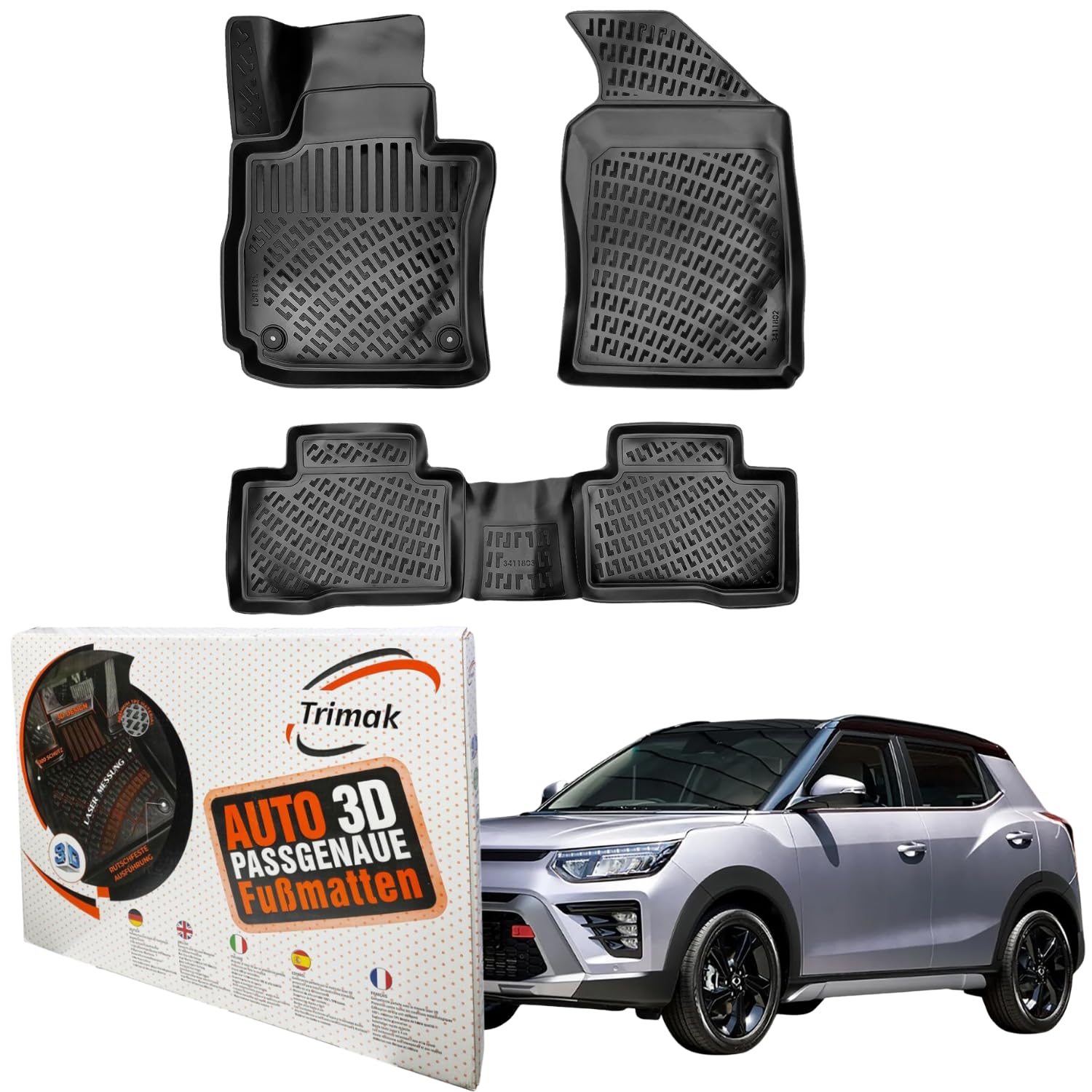 Maximaler Schutz trifft auf perfekte Passform: Die passgenauen Trimak Gummimatten wurden mithilfe modernster 3D-Laserscantechnologie speziell für den Trimak SsangYong Tivoli 2015-2024 Auto AllWetterGummimatten entwickelt.