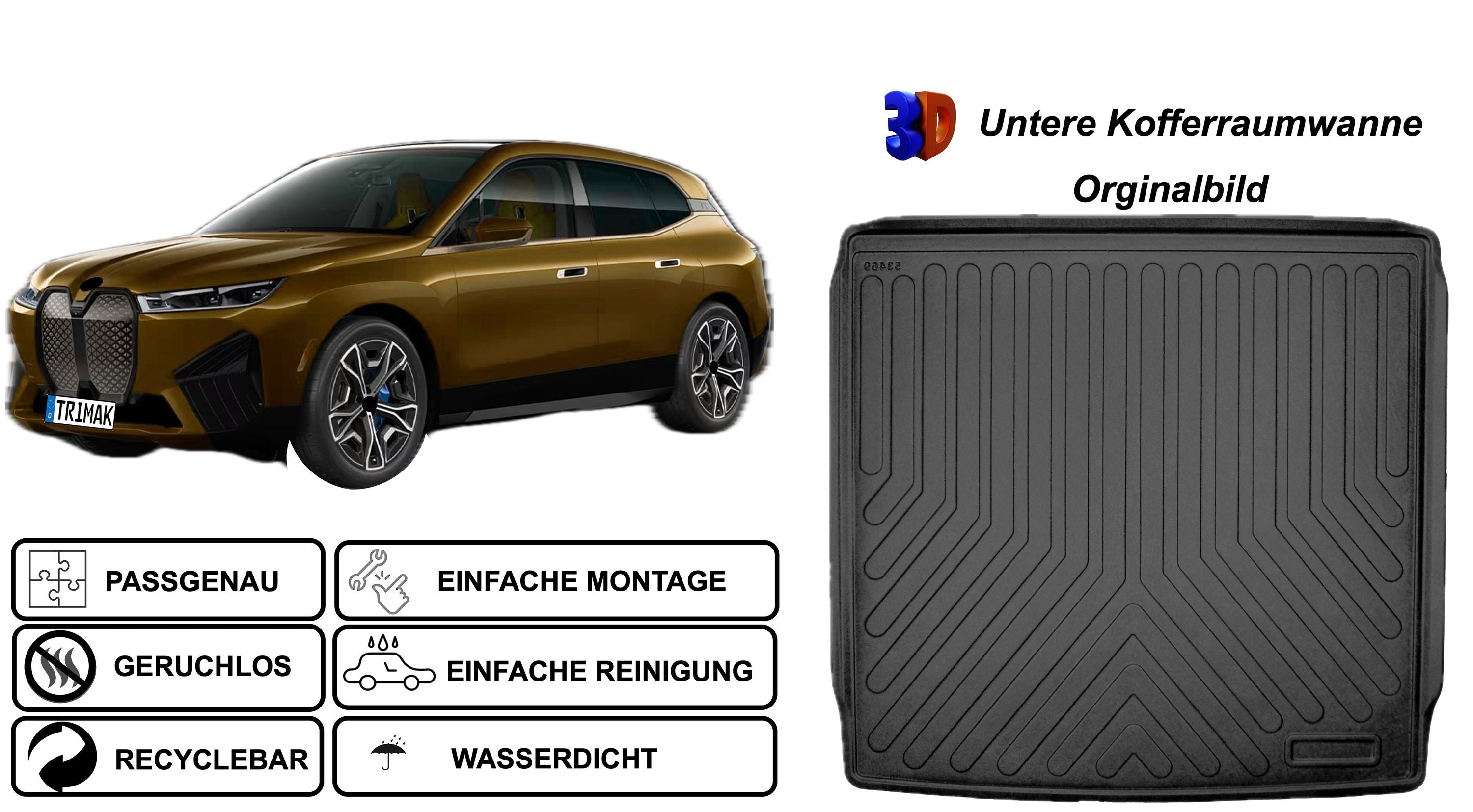 Maximaler Schutz trifft auf perfekte Passform: Die passgenauen Trimak Gummimatten wurden mithilfe modernster 3D-Laserscantechnologie speziell für den Trimak Kofferraumwanne BMW IX ab 2022 Kofferraummatte entwickelt.