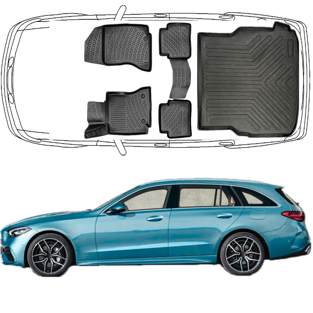 Maximaler Schutz trifft auf perfekte Passform: Die passgenauen Trimak Gummimatten wurden mithilfe modernster 3D-Laserscantechnologie speziell für den 3D Auto Fußmatten & Kofferraumwanne Set Kompatibel mit Mercedes C-Klasse S206 T Modell ab 2021 entwickelt.