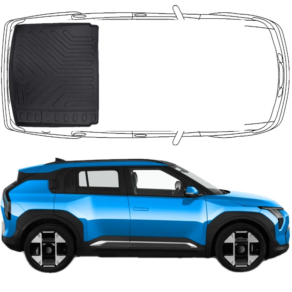 Maximaler Schutz trifft auf perfekte Passform: Die passgenauen Trimak Gummimatten wurden mithilfe modernster 3D-Laserscantechnologie speziell für den KIA EV3 Untere Kofferraumboden entwickelt.