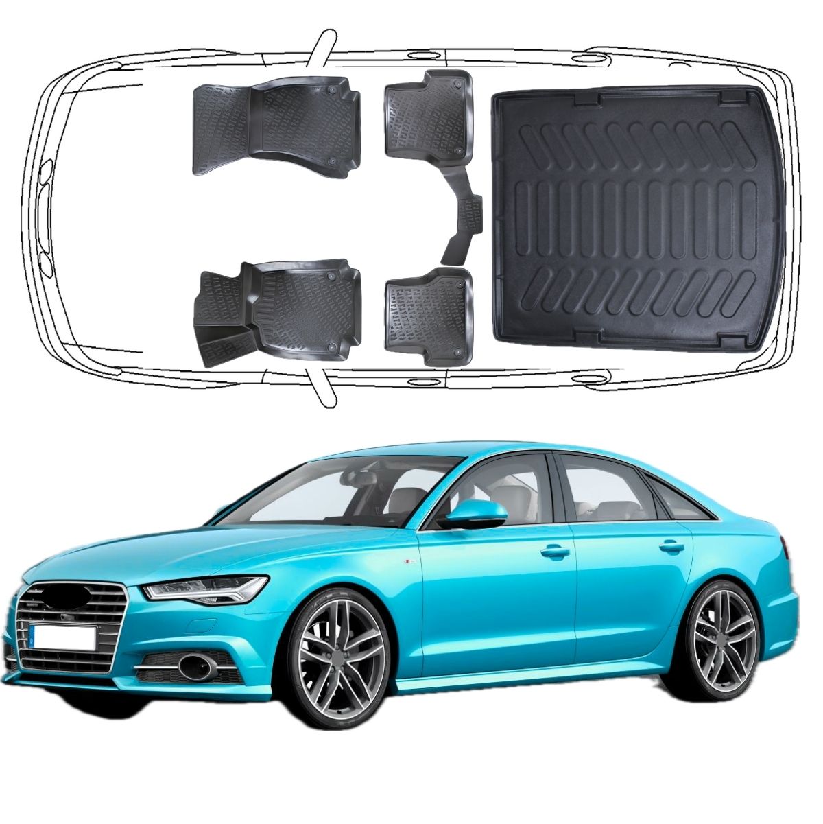 Maximaler Schutz trifft auf perfekte Passform: Die passgenauen Trimak Gummimatten wurden mithilfe modernster 3D-Laserscantechnologie speziell für den 3D Auto Fußmatten & Kofferraumwanne Set Kompatibel mit Audi A6 C7 2011-2018 Sedan Limousine entwickelt.